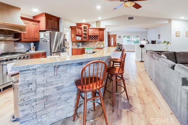 Nestled in the highly desirable Carlton Estates neighborhood of Santee, this beautifully updated single-story home blends comfort, style, and versatility. With 3 bedrooms, 2 bathrooms, 2,089 square feet of living space, and a versatile at-home office or gym; it’s perfect for everything from relaxed living to modern work-from-home life. An open-concept layout connects the living, dining, and outdoor areas, creating an effortless flow for everyday living and entertaining. At the heart of the home sits the chef’s kitchen, showcasing a 6-burner Dacor range with a double oven, new stainless-steel refrigerator and dishwasher, a wine fridge, luxury countertops, and a spacious walk-in pantry. New luxury vinyl plank flooring runs throughout the main living areas, while new plush carpet adds comfort in the bedrooms. Part of the finished garage has been transformed into a climate-controlled gym complete with A/C, ideal for a home office, studio, or fitness space. A brand-new air conditioning system keeps the entire home comfortable year-round. Outside, the large, low-maintenance backyard offers a private retreat with artificial turf, a cozy gas fire pit, and plenty of space for entertaining or relaxing. The solar panels add energy efficiency and help keep utility costs low. Provide your child with every academic advantage by living in a community served by Santee School District and Grossmont Union High School District. Give yourself an "A" for choosing a home that will send your children to the following schools: Carlton Hills Elementary School (8/10 in Great Schools Test Ranking) and West Hills High School (8/10 in Great Schools Test Ranking). Don't miss an opportunity to make this stunning house your forever home!