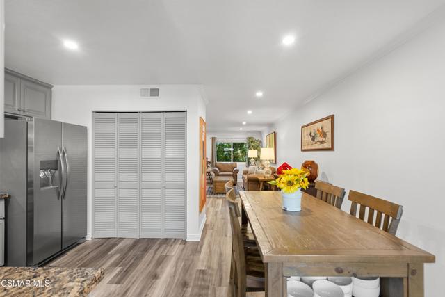 Welcome to this beautifully updated 3 bed, 2 bath townhome in the heart of Agoura Hills! This inviting home features an open floor plan with newer wood-like flooring, recessed lighting, and a bright, airy layout. The remodeled kitchen boasts granite countertops, gray cabinetry, and stainless steel appliances, flowing seamlessly into the dining and living areas. Upstairs offers three bedrooms and an upgraded bath with dual vanities and modern finishes. Enjoy your large private patio surrounded by lush greenery--perfect for relaxing or entertaining. For added convenience, the home also features a dedicated laundry closet, dual pane windows, and central A/C. Enjoy direct access to the shared two-car garage, where you are allocated one designated parking space, along with an additional outdoor parking permit--providing convenience for daily routines and ample storage options. Conveniently located close to shopping, schools, hiking/biking trails, parks, and fwy access. HOA pays for water and trash. This turnkey home has it all!