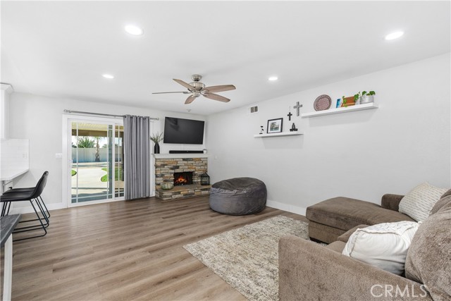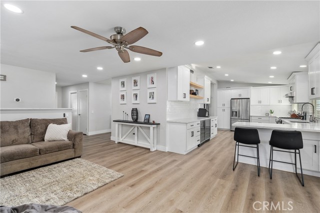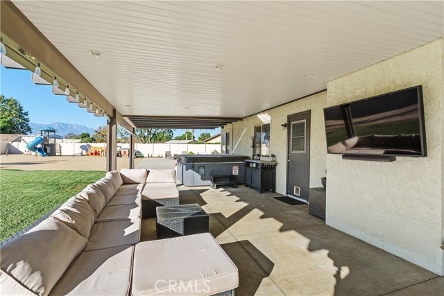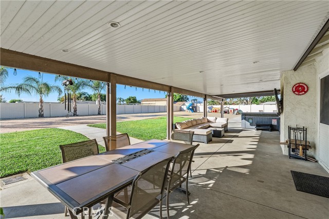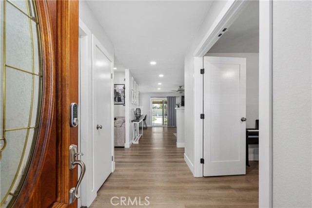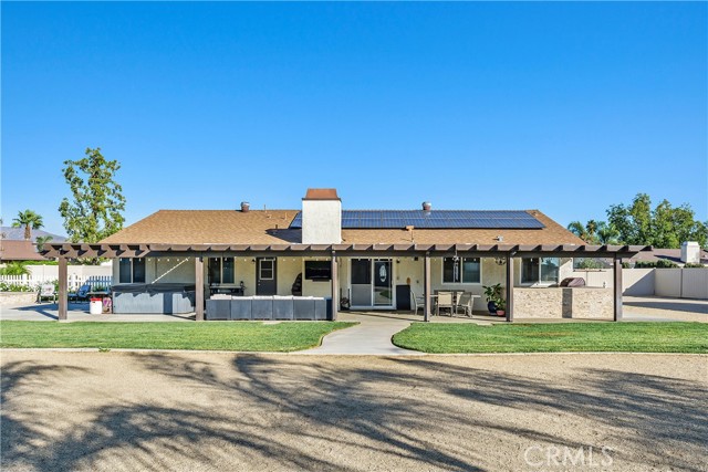 Step into modern comfort and style with this beautifully upgraded 4-bedroom horse property in Jurupa Valley, where every detail has been thoughtfully designed for quality living. Situated on a spacious, flat lot at the end of a cul-de-sac, this immaculate home offers exceptional privacy, versatility, and room for all your outdoor needs—including ample boat and RV parking. The kitchen was fully remodeled in 2023 and is a true showpiece—featuring stunning quartz countertops, upgraded soft-close cabinetry, stainless steel appliances, two built-in beverage/wine refrigerators, and a built-in microwave. Recessed lighting enhances the space, while new dual-pane windows fill it with natural light. New vinyl flooring flows seamlessly throughout the home, complemented by upgraded six-inch baseboards, newer carpet in the bedrooms, and recessed lighting in every room. The primary suite offers a luxurious retreat with a fully remodeled bathroom and a custom walk-in closet complete with built-ins and a stylish barn door. Secondary bedrooms include mirrored closet doors and share the same modern finishes and attention to detail. This home features energy efficient and convenient paid-off solar (22 panels), dual-pane windows throughout, and a brand-new attic ducting system. The home is also fully equipped as a smart home, featuring smart light switches, ceiling fans in the master and living room, a Ring camera, smart front door lock, Nest thermostat, and security system. Step outside to an entertainer’s paradise! The large Alumawood patio includes electrical outlets and overlooks a beautifully landscaped backyard with upgraded irrigation and custom lighting. Enjoy evenings around the custom fire pit or prepare meals in the outdoor BBQ area complete with a fridge, storage, and upgraded countertops. The two-story shed with a new roof and electrical offers ample storage and flexibility. Newer vinyl fencing surrounds the property, providing privacy and charm, while the side yard with grass is perfect for pets or play. Additional features include a drywalled garage with laundry area, electric car charger, and tankless water heater. This exquisite home is move-in ready and perfectly blends modern upgrades, outdoor living, and energy efficiency—all within a highly desirable Jurupa Valley neighborhood.