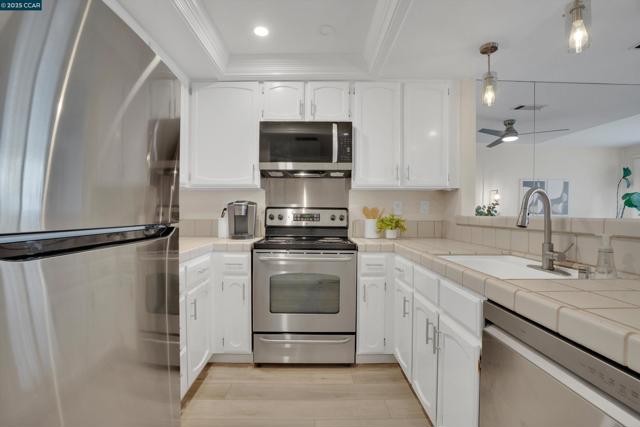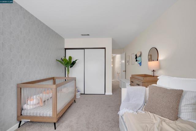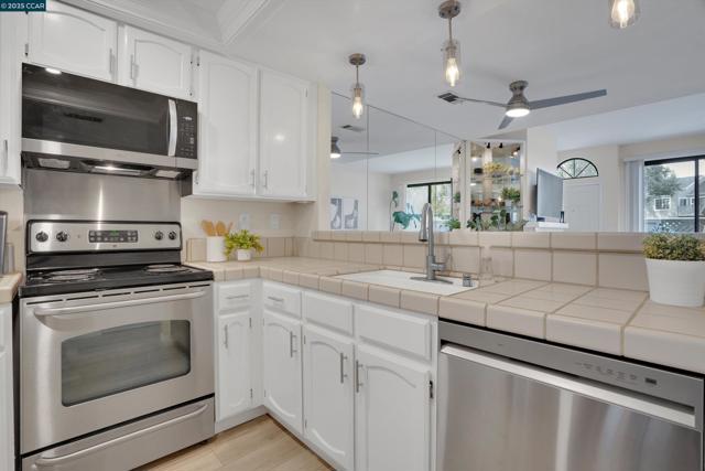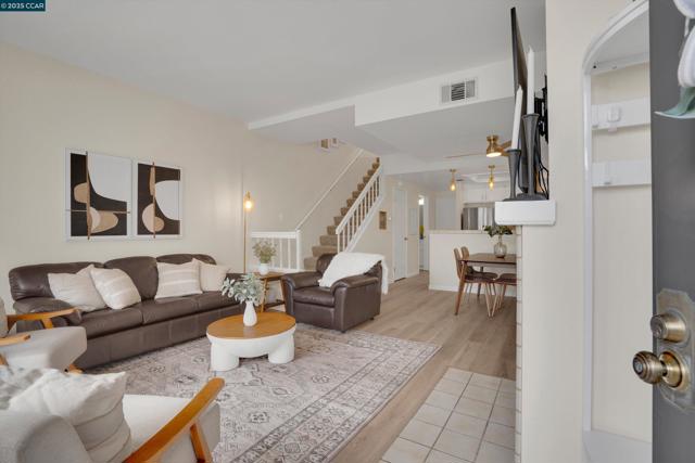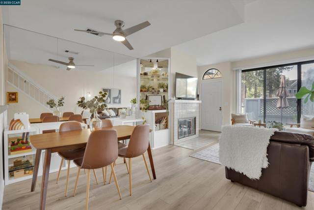 Tucked away in the sought-after Ellinwood Park community, this beautifully updated 2-bedroom, 2.5-bath townhome offers the perfect blend of comfort, privacy, and convenience. Step through the private courtyard into an open-concept living space with a cozy fireplace that connects seamlessly to the kitchen and dining area. The updated kitchen showcases newer stainless steel appliances. Upstairs, you’ll find two spacious bedrooms, each with their own ensuite bathroom. The guest room bathroom has been fully remodeled, and all bathrooms include newer low-flow toilets. Recent upgrades, including laminate flooring, carpet, fresh paint, a newer HVAC system, and water heater, provide peace of mind for years to come. The home also includes stackable in-unit laundry and an attached garage for added convenience. Enjoy tranquil mornings on your front patio or unwind on the deck off the primary suite overlooking the serene fountain & pond. Spend sunny afternoons at the community pool and spa. The Ellinwood Park community is known for its lush grounds, ponds, wildlife, and peaceful walking paths. All of this, just minutes from shopping, dining, BART, and freeway access, offering the best of East Bay living in a peaceful setting.