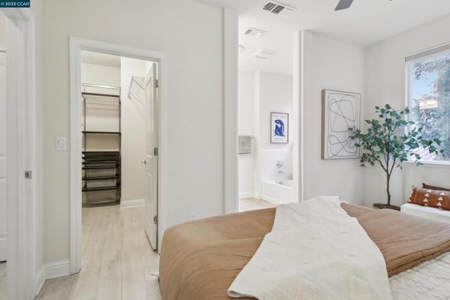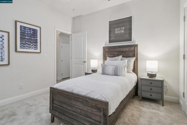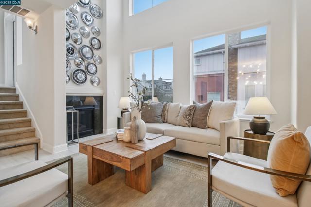 Like brand new in a small enclave of just 37 homes, located steps from Todos Santos Plaza this meticulously maintained single-owner home was built in 2015. Offering 1,777 sf. of living space where modern aesthetics meet comfort and functionality with fresh paint, plush new carpeting and durable luxury vinyl this home is truly move in ready. The main level features a versatile bedroom or office with a full bath and outdoor access, ideal for guests or a quiet retreat. The second level showcases soaring ceilings and numerous windows that flood the space with natural light. A spacious eat-in kitchen and generous family room are anchored by a cozy gas fireplace, creating the perfect setting for entertaining or relaxing evenings at home. Upstairs, the primary suite feels like a spa retreat with a soaking tub, separate walk-in shower, and dual vanity, plus another bedroom and full bath. Additional highlights include paid solar panels for added energy efficiency, a two-car garage, laundry room with sink and cabinetry, ample storage throughout, and a darling outdoor patio with sleek horizontal redwood finishes—a tranquil spot to enjoy the fresh air. Unique to the area, updated, and perfectly located near restaurants, coffee shops, shopping, and BART. Hurry, this special home won’t last!