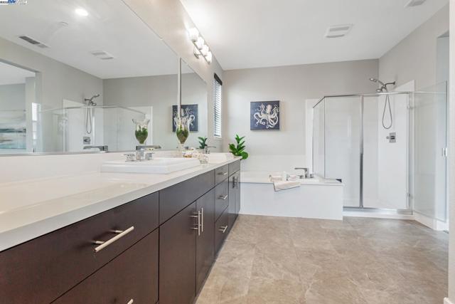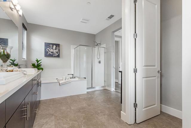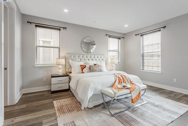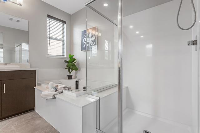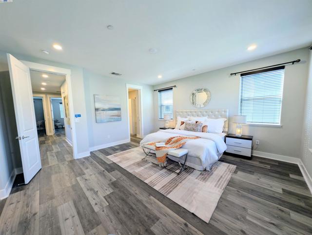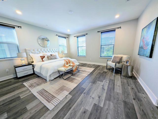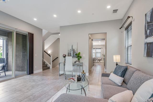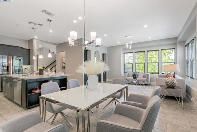 STUNNING! Dream home opportunity: 2016 built North West facing corner unit upscale single-family with 3101 sq ft of luxury and comfort! Features 10' ceilings, abundant natural light, modern finishes, whole-house water softener, smart lighting and security system. Enter into a formal living area with a powder room (Convertible in fourth bedroom + full bath) access to private yard and oversized garage. Bright open main level features a gourmet kitchen with stainless steel Bosch appliances, smart refrigerator, granite countertops walk-in pantry, and expansive island. Generous dining space flows into the family room with a cozy fireplace. Versatile flexroom (ideal for office/media room/playroom) opens into a large patio-perfect for outdoor entertaining. Upstairs features generously sized bedrooms and a guest bath. Luxurious primary suite features a walk-in closet with custom cabinets, a spa-inspired bathroom with soaking tub and walk-in shower. Vibrant Township Community amenities including clubhouse, fitness center, yoga studio, pool, spa and kids playground are just a few steps away.Golf center, Numerous parks, Hiking trails, Downtown, Fairgrounds and I-680 all within minutes. Make this thoughtfully designed and meticulously maintained home yours!