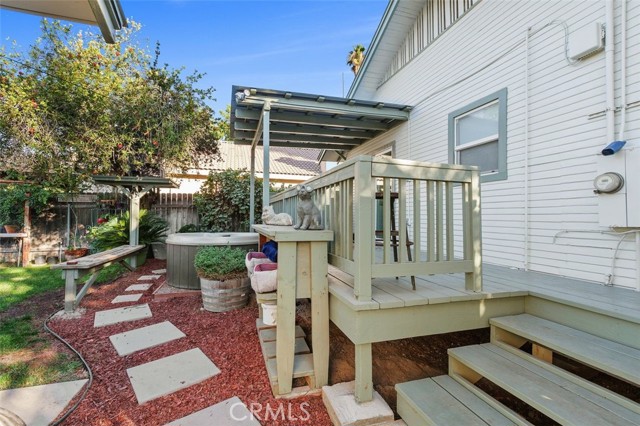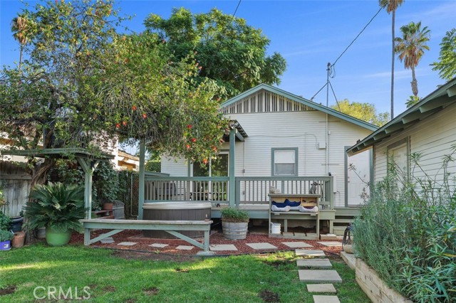 Charming Fully Remodeled 1924 California Bungalow in North Riverside. A Rare Blend of History and Modern Comfort! This meticulously updated two-bedroom, one-bathroom bungalow was constructed in 1924 with durable redwood. The residence thoughtfully integrates classic architectural elements with contemporary updates for comfortable living. Interior Features: The home has been freshly painted throughout, providing a clean and inviting atmosphere. The kitchen features a modern remodel, including stainless steel appliances, refrigerator, stove, dishwasher, and a brand new beverage refrigerator, all of which are included. The bathroom was updated with sleek finishes and LED lighting. New flooring was installed last year. The primary bedroom offers a built-in closet organizer, while the secondary bedroom includes a closet organizer and sliding doors leading to the backyard patio and spa; the spa is included with the property. Garage & Workshop: The detached, two-car garage is constructed from redwood. There is also a separate shed/workshop accessible from both the front and rear of the property, independent from the garage. Both the garage and workshop benefit from upgraded 220V electrical systems with 60 Amp service. Outdoor Highlights: The front yard is landscaped with mature cherry and apricot trees as well as vibrant potted plants. Backyard alley access featuring a gate provides potential for future development, including an ADU (zoned R17000). The rear porch/patio area is constructed of wood and includes a spa. Custom front fencing and a full property enclosure contribute to privacy and security. Additional Upgrades: The home features all-new plumbing, a rewired electrical system, and a tankless water heater with a zero-clearance unit. This move-in-ready residence combines historic charm with modern conveniences and presents exciting opportunities for future enhancements.