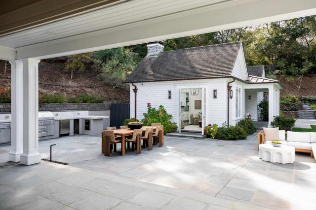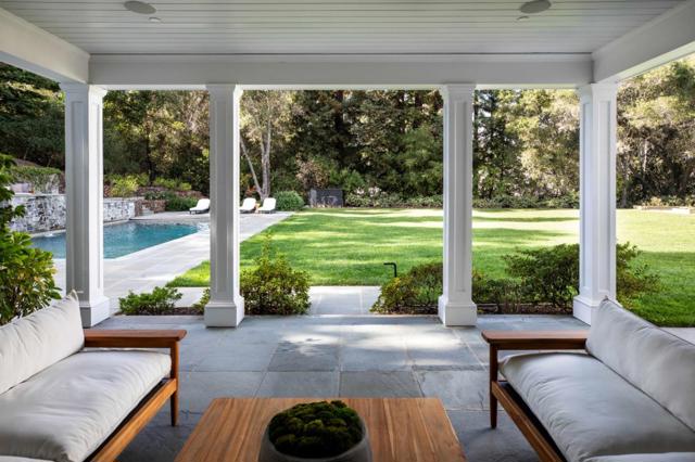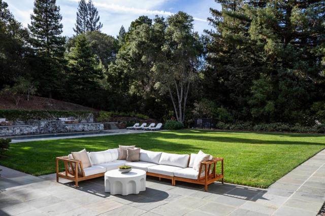 Timeless design is enjoyed in this 11 year old transitional 7-bedroom, 7-bathroom home perfectly situated on a private 1 acre lot with tree top views. Spanning over 10,500 square feet, this luxurious home is ready to cater to your every need. Dramatic spacious entry opens unto the formal living room, dining room, and elegant private office with charming landscape views from every window. The gourmet kitchen is a chef's dream, including a gas cooktop, marble countertops, a large island, and butler's pantry all perfect for entertaining. Large family room overlooks kitchen with bi-fold doors and steps out to the flat rear yard. A half bath and bedroom suite complete the main floor. Upstairs features the primary bedroom with dramatic walk in closet and marble bath, 4 additional bedroom suites, and large laundry room. Lower level includes, a recreation room with bar, gym, a 7th bedroom suite, theater, and inviting wine cellar. 2-car attached garage and 1-car detached garage with a large private paver stone driveway provide ample parking. A beautiful one bedroom guest house overlooks the bluestone patio, pool, hot tub, and private flat yard, with kitchen garden. A true Atherton gem!