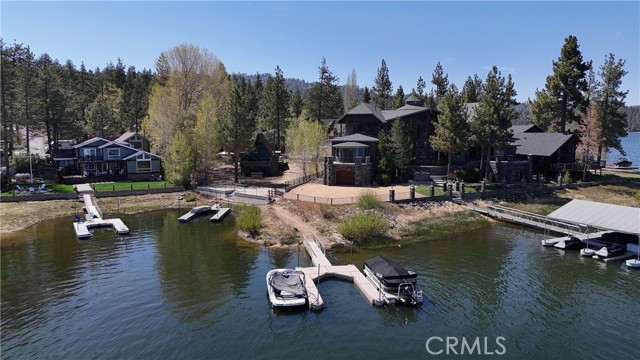 Welcome to a truly one-of-a-kind residence in stunning Metcalf Bay ~ An elegant home surrounded by multimillion-dollar lakefront estates and just a short stroll to Pleasure Point Marina ~ Offering the perfect blend of sophistication, comfort, and convenience, this property includes its own boat dock with easy lake access, making it an exceptional opportunity to enjoy the very best of luxury living in the heart of Big Bear ~ This home is ready for any season ~ Set on an expansive 14,000+ sq. ft. lot, the grounds are beautifully landscaped and feature a circular driveway, ample parking, and a private fenced area with a volleyball court ~ Perfect for outdoor entertaining and pets alike ~ The spacious deck invites you to relax beneath the pines, savor your morning coffee, or unwind in the evening with a glass of wine as you watch the sunset paint the sky in golden hues ~ Inside, this thoughtfully designed home offers a seamless blend of rustic charm and modern elegance ~ The living room features a cozy fireplace for gathering with loved ones, including a screen projector that transforms the living room into your own movie theater ~ While high ceilings and large windows throughout allow natural light to pour in, creating an airy and inviting atmosphere ~ A main-level bedroom with bathroom attached ensures accessibility and convenience for family and guests, while three additional bedrooms upstairs with high ceilings provide ample space for everyone ~ Additional highlights include an oversized laundry/mudroom off the garage, located on a paved and maintained road for easy year-round access, and a location just minutes from The Village’s boutiques, dining, and entertainment ~ Whether you’re seeking a luxurious primary residence, a serene second home, or an investment property to offset costs, this lakeside retreat offers timeless appeal and endless possibilities ~ Don’t miss your chance to experience Lake living at its finest ~ offered at an exceptional value.