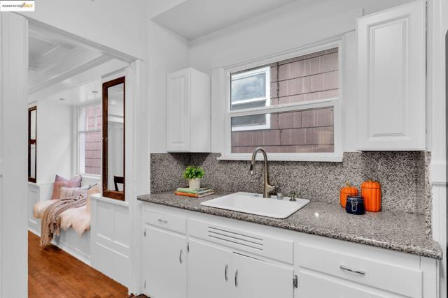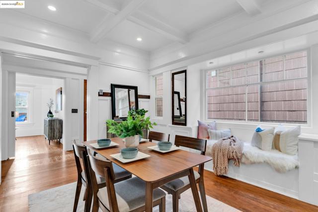 Charming Craftsman in Oakland’s vibrant Clinton neighborhood! This timeless 2+ Bedrooms / 2 bath home blends classic character with modern updates. Enjoy beautiful wood floors, a light-filled living room with decorative fireplace, and a formal dining room featuring box-beam ceilings and elegant wainscoting. A large kitchen boasts granite countertops, stainless steel appliances, and tiled floor. Stylish updated bathrooms feature subway tile and clawfoot tubs. The main level has 2 bedrooms and 1 bath. The finished downstairs space, complete with a separate entrance bath and kitchen, is ideal for artists, makers, home office, guests, multigenerational living—the possibilities are endless. Tons of bonus / storage space! Outside, enjoy a backyard with large raised garden beds and space to entertain. Right next door to Café Xochi with great coffee and food and close to Champa Garden, Lake Merritt, and the Grand Lake and Lakeshore districts, with easy access to transit and freeways. Work at home or at the cafe! Super convenient. Attached garage plus gated off-street parking. Roof done (2016), Hardi board siding, 100 amp electrical, laundry room w washer/dryer, sewer compliant ++ 83 Walkscore! A true neighborhood gem with heart and character~