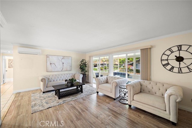 Come and see this beautiful, light and bright Casa Linda with no-one above and no-one below and no steps from your car to the front door. From the moment you step through the custom front door, you will be in your own paradise. This coop is located in the peaceful, shady, sought after area known as Nob Hill. Some features include WOOD look flooring - ENCLOSED PATIO - SMOOTH CEILINGS - MINI SPLIT A/C and HEAT - INSIDE LAUNDRY. The kitchen has been remodeled with granite counter tops, dishwasher, bar area and more. The living room is large. The master bedroom suite has an en-suite bathroom, added closet plus the inside laundry. The guest bedroom has also access to the large enclosed patio. The enclosed patio is can be used in a variety of ways such as an office, sitting room, dining space, hobby room, office, art studio and more! You don’t want to miss this fantastic home which is priced for a quick sale. The prime location away from busy streets is close to multiple gates gives you easy access to Clubhouses 1 with a pool, a gym and more. It is also close to shopping, restaurants, medical offices, Saddleback Hospital, the post office, the freeway and more. Laguna Woods is one of the most prestigious 55+ communities in Orange County. In Laguna Woods you have access to: bus system around the community & to area shopping, restaurants, medical facilities; 5 pools & 4 hot tubs; golf, tennis, library, 7 clubhouses, 200+ clubs, 3 fitness centers, theater, horse back riding/stables, garden centers, basketball, card rooms, billiards, bocce ball, art studios, Emeritus classes & more!