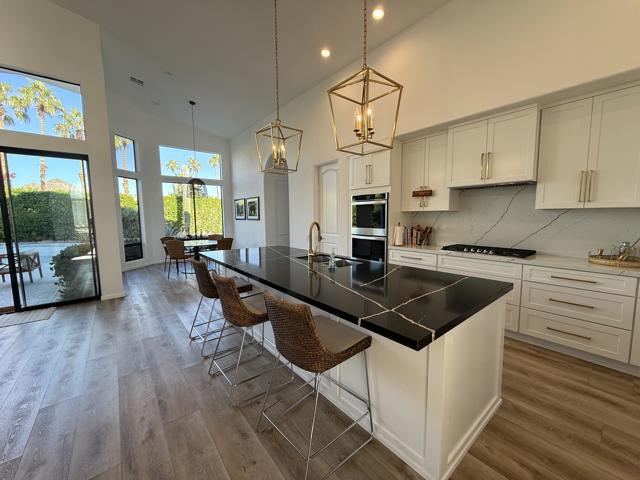 Photos coming soon. Welcome to an elegant desert retreat in the coveted gated community of Painted Cove in La Quinta. Thoughtfully remodeled and beautifully appointed, this light and bright residence offers the perfect blend of comfort, sophistication, and indoor-outdoor living. This stunning residence captures the essence of desert luxury living -- stylish, spacious, and ready to enjoy.Step inside to discover an inviting open-concept layout featuring soaring ceilings, expansive windows, and stylish finishes throughout. The spacious great room showcases a stunning fireplace, modern furnishings, and seamless flow to the outdoor living areas -- ideal for entertaining or quiet relaxation. The remodeled kitchen is a showpiece with quartz countertops, a large island, custom cabinetry, and high-end stainless appliances.The home offers three spacious bedrooms each designed for privacy and comfort. The primary suite is a true retreat with a spa-like bath, generous walk-in closets, and direct access to the patio.Set on an expansive corner lot, the backyard is an entertainer's dream -- complete with a sparkling pool and spa, multiple lounge areas, and lush landscaping that creates a sense of tranquility and seclusion. Enjoy morning coffee under the covered patio or evening gatherings around the BBQ while taking in the beautiful mountain backdrop.Whether you're seeking a full-time residence or a desert getaway, this home captures the essence of desert living. Enjoy low HOA fees and an amazing community green space where the neighborhood comes together in a pet friendly environment. Homes like this don't come on the market often. This is a must-see to fully appreciate its design, character, and location. Painted Cove is a highly sought-after enclave within La Quinta, known for its peaceful atmosphere and close proximity to premier golf courses, hiking trails, walking distance to Old Town La Quinta, and world-class dining and shopping.