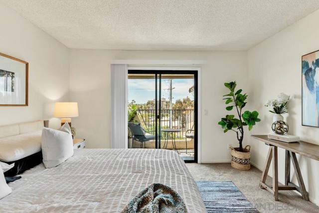 Facing west with Bay views, this top-floor, large two-bed, two-bath condo features brand-new flooring and carpet, fresh interior paint, and is ready for you to move in and enjoy. The bright and airy living space opens to a well-appointed kitchen and dining area. Both bedrooms offer generous closet space and natural light, with views of the bay! Enjoy access to resort-style amenities, including a sparkling pool, relaxing spa, and community BBQ area—perfect for soaking up the San Diego lifestyle. This unit also includes 2 parking spots (one covered, one uncovered) and is conveniently located near trolley access, trendy restaurants, shopping, minutes from USD and freeway access. Whether you're a first-time buyer or looking for a low-maintenance investment property, this low-HOA Bay Park gem checks all the boxes.