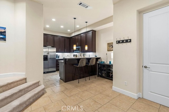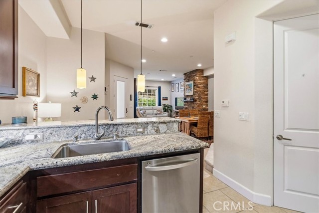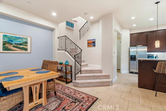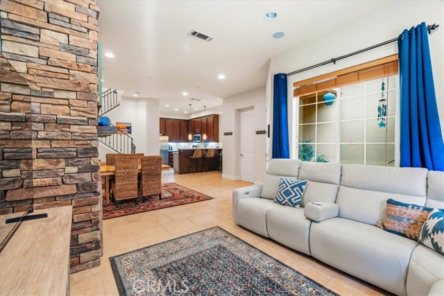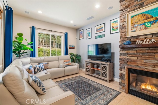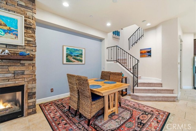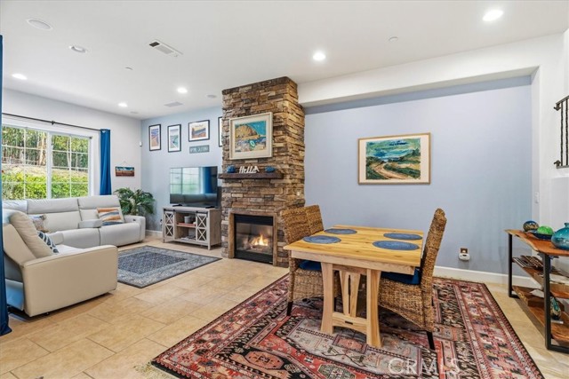 Step into refined coastal living at this elegant townhouse in the beautiful Trilogy at Monarch Dunes community. Beyond a gated courtyard is a 1,639 square foot home with 3 bedrooms, 2 full bathrooms, and a downstairs powder room. The open-concept main level connects the kitchen, dining room, and living room areas beneath recessed lighting anchored by a stone-surround fireplace adding warmth and character. A view of the tranquil monarch butterfly habitat is seen from the living room window. The kitchen features granite countertops with a stylish backsplash, a breakfast bar accented by pendant lighting, a gas stove, stainless steel appliances, and generous storage with shaker cabinets and a walk-in pantry. A dedicated laundry room with ample cabinetry leads to a two-car garage with built-in storage. Upstairs, the spacious primary suite includes a walk-in closet and opens through a glass sliding door to a private balcony. The ensuite bath offers dual sinks and a walk-in shower. Two additional bedrooms and a full bath provide space for family, guests, or a home office. The living space is enhanced by a skylight and abundant windows to provide plenty of natural light. Within Trilogy, residents enjoy a wealth of resort-style amenities including an 18-hole golf course, 12-hole challenge course, Adelina’s Bistro, The Butterfly Grill, Sandalwood spa, a heated lap pool, art studio, and courts for tennis, pickleball, and bocce ball along with many other amenities for an exceptional blend of leisure and luxury living.