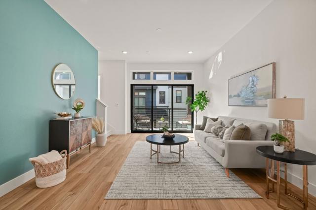 Welcome to 176 Waters Park Circle, a modern townhouse in San Mateo's vibrant Marina Lagoon neighborhood. Built in 2021, this beautifully maintained home offers 2 beds & 2.5 baths, and 1,602 sqft of thoughtfully designed living space. The open-concept main level seamlessly connects the living, dining, and kitchen areas, creating an inviting atmosphere ideal for both entertaining and everyday living. The chef-inspired kitchen features top-of-the-line appliances, sleek countertops, and ample cabinetry for the modern cook. Enjoy a balcony off the main living area that extends your living space outdoors, perfect for morning coffee or evening relaxation. Upstairs, two spacious bedrooms offer comfort and privacy. The primary suite boasts a generous walk-in closet, an elegant en-suite bathroom, and its own private balcony for a quiet retreat. Thoughtful upgrades include owned solar panels, an EV charger, and luxury vinyl flooring throughout (except stairs). Additional highlights include in-unit laundry, central A/C, and an attached two-car tandem garage for convenience and storage. Ideally located near parks, shopping, dining, and major highways, this home combines modern design, energy efficiency, and a prime San Mateo location - offering the perfect balance of style and everyday ease.