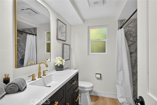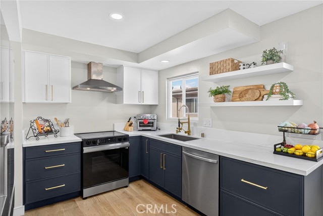 Stylish upgrades and a smart layout come together in this turnkey 2-bedroom, 2-bathroom condo located in the gated Merit Manor community in Gardena. Freshly remodeled throughout, the home now features new engineered hardwood flooring, a fully renovated kitchen with two-tone cabinetry (navy base and white uppers), quartz countertops, and stainless steel appliances including a built-in microwave. Both bathrooms have been tastefully updated with modern tilework and finishes, and all new interior doors and fresh paint give the home a clean, contemporary feel. The spacious layout includes a large living room filled with natural light, a designated dining area, and a private balcony that offers a quiet place to unwind. The primary suite features a large closet and an updated ensuite bathroom. A generous hallway closet adds to the ample storage inside, and there’s an additional outdoor storage cabinet in the covered carport. Merit Manor is a well-kept, secure complex with mature trees, grassy common areas, and a serene, neighborly feel—all just minutes from parks, shopping, restaurants, and the beach. With easy access to major freeways, this move-in ready home offers both comfort and convenience in the heart of the South Bay.