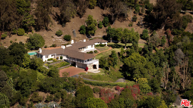 A once-in-a-generation opportunity 2.28 gated acres with sweeping views, original grandeur, and remarkable potential. Dramatically sited in the hills of Outpost Estates, this extraordinary estate is available for the first time in nearly 65 years. Designed by celebrated architect Roland Coate and built for Academy Award-winning actor Melvyn Douglas, the single-story residence reflects the simplicity, scale, and elegance of classic California ranch architecture. The sprawling 6,748-square-foot floor plan includes six bedrooms and seven bathrooms, along with grand, light-filled interiors that maintain a striking sense of proportion and restraint. Original details offer a rare glimpse into another era, while the layout flows effortlessly to the expansive grounds beyond. The setting feels like a private park rolling, serene, and cinematic in scale with a pool, mature landscaping, and sweeping city views. Whether restored to its original splendor or completely reimagined, 7141 Senalda Road presents an extraordinary opportunity to create something truly singular on one of the largest and most discreet residential parcels in Outpost Estates.