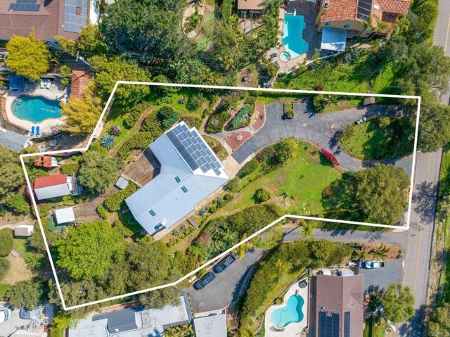 Welcome to your private, sustainable retreat! This spacious 4-bedroom, 2.75-bathroom home boasts 3,225 square feet of living space on a massive, professionally landscaped 0.71-acre lot. The property is a true gardener's paradise, featuring mature lemon, grapefruit, tangerine, and passion fruit trees. Designed for versatility, the home’s unique layout is perfect for multi-generational living or generating rental income, thanks to two separate kitchens on the upper and lower levels. The double driveway and ample yard space provide the ideal opportunity to build an Accessory Dwelling Unit (ADU), adding even more value and potential. Move in with confidence thanks to major modern upgrades including a newer roof, newer windows, and a fully paid-off solar system. This key feature guarantees significant energy savings and efficiency from day one.