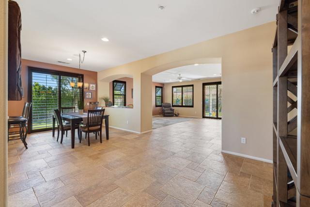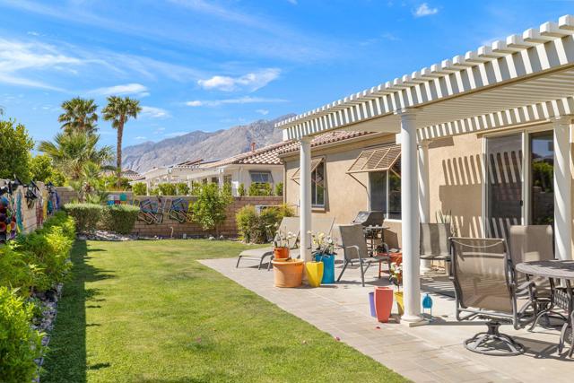 Welcome to Four Seasons, a 55+ active adult community in Palm Springs. This beautiful Canyon #1 model home has been lovingly cared for and features 2288 square feet of luxury desert living. It offers a nice separation of 3 bedrooms, 2 bathrooms, open floor living room with a separate dining area just off the large kitchen. The spacious Primary Bedroom has an ensuite with dual cabinets and sink, step in shower, soaking tub and a walk-in closet. The bright chef's kitchen features a breakfast nook area, large center island, pantry, granite slab counters with all KitchenAid appliances. All windows and doors are dual pane with custom shutters and the same porcine tile flooring throughout. The inside laundry room has storage, a deep utility sink, full size washer & dryer and has access to the attached 2-car garage. This home has a very reasonable lease Sunrun Solar system already installed, which is a huge plus in the desert. The front yard has natural desert scape while the backyard has more of a lush landscape with citrus trees and grass.The HOA amenities include high speed Frontier internet, a beautiful clubhouse, fitness center, game room, pickleball, bocce ball, basketball, tennis courts, 3 pools and spas, social events, all perfect for a resort lifestyle!You're close to everything Palm Springs has to offer: restaurants, shopping, movies, entertainment, casino, hiking, International Airport, hospital and more.