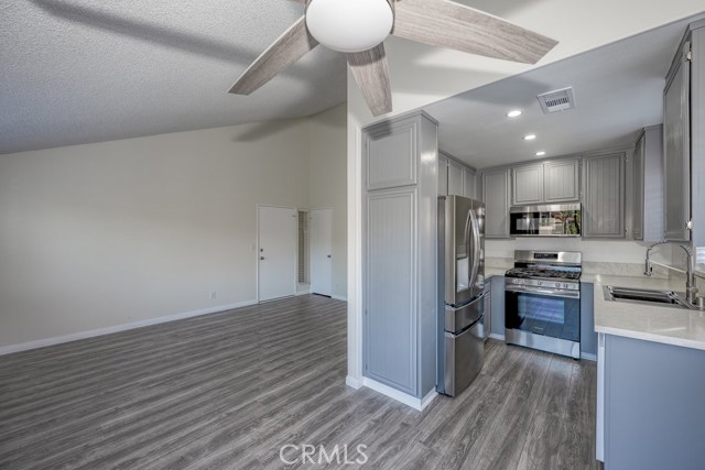 Welcome home to this stylishly renovated condo featuring soft painting to help bring in the sunlight. New laminate wood flooring, new kitchen with stunning new cabinetry, and all new stainless steel appliances. Sunlight fills every room, creating a bright and inviting atmosphere. Off the kitchen is the dining area with a slider to the relaxing private patio with views of the courtyard. All bedrooms down the hallway have been updated with new window coverings and ceiling fans. All bedrooms on one floor, no loft. Both bathrooms have been tastefully refreshed, and the in-unit laundry is conveniently tucked away in the hall bathroom for easy access. The community is beautifully landscaped, and you’ll enjoy multiple pools, lush green spaces, and nearby parks. Move-in ready, this home offers comfort, convenience, and style in one perfect package.