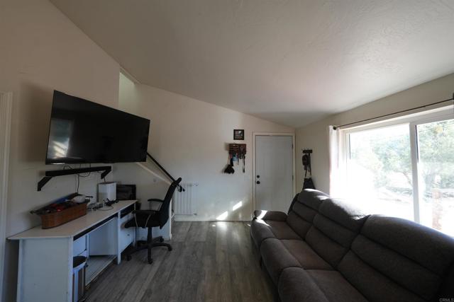 Welcome home to your mountain retreat with views that are sure to impress. This cozy home has been recently remodeled and features on trend white shaker cabinets, durable Quartz countertops and stainless steel appliances. Upgraded LVP flooring on the lower level main area and bathrooms with plush carpet found in all 3 bedrooms. The upstairs houses the large primary bedroom with views abounding! Ample light floods in from all the windows, as you get to take in the occasional snow capped mountains. A fully remodeled bathroom is off of the primary bedroom as well. Downstairs features two more bedrooms with an updated bathroom in between. Heading outside you'll find a brand new deck with canopy shades and string lights--a perfect functional space for outdoor seating or simple entertaining. The mostly flat useable acre is a blank canvas for you to make it your own and the possibilities are endless! Surrounded by the San Jacinto mountains, roughly a 20 minute drive to Palm Desert and close to San Diego and Los Angeles, this charming home is just waiting for you to call it your own!