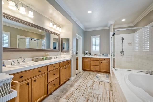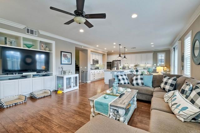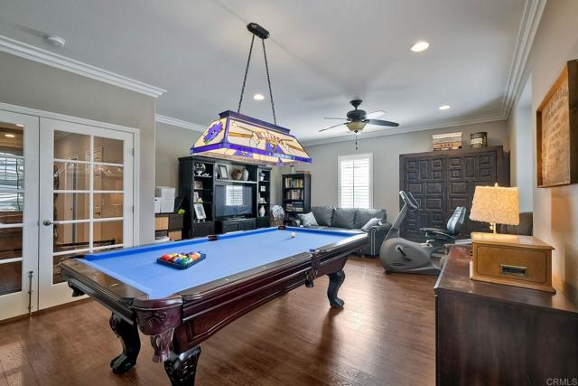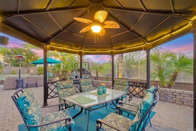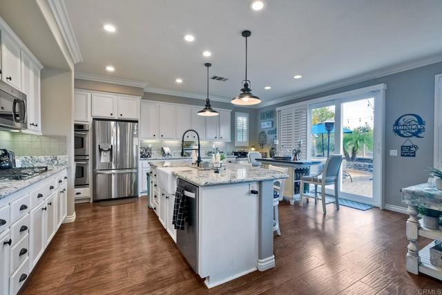 REDUCED PRICE! MOTIVATED SELLER! Exquisite Luxury Living in Harveston, Temecula Welcome to unparalleled elegance in the prestigious Harveston community of Temecula, California. This magnificent 4-bedroom, 4-bathroom residence spans 3,675 square feet, making it the largest and most luxurious home in the development. Built in 2006 and thoughtfully upgraded, this two-story masterpiece blends modern sophistication with family warmth. A custom front porch with stately pillars and ambient LED lighting greets you. Inside, soaring 9-foot ceilings on both levels (a rare feature in this community) and expansive, naturally lit interiors await. Freshly painted walls, rich laminate wood floors, elegant crown molding, and wood shutters on 38 rescreened windows enhance the home's charm. The recently remodeled gourmet kitchen boasts top-of-the-line new appliances, pull-out drawers in custom cabinets, and new LED lighting. Adjacent are the upgraded pantry and laundry room. The open-concept design connects the kitchen to a spacious family room with a built-in entertainment system and cozy gas fireplace. A formal dining area awaits special occasions. Upstairs, retreat to the luxurious master suite featuring a huge walk-in closet and custom storage with chic barn doors. The master bathroom offers upscale finishes, new LED lighting, and a new frameless shower door. Additional living spaces include a downstairs guest bedroom with full bathroom, an upstairs office perfect for remote work, a large bonus room complete with a pool table, and a downstairs den. Step outside to your resort-style backyard—a private oasis designed for relaxation and entertainment. Enjoy the cocktail swimming pool and jacuzzi with an integrated firepit, custom lighting, pavers, a charming gazebo, and a built-in BBQ island. The 6,098 square foot lot includes six fruit trees—lemon, white nectarine, and fig—offering delightful homegrown produce. Modern conveniences abound with 20 solar panels under a transferable lease, generating 11,000 kilowatts per year at a fixed rate of $149 per month, ensuring energy savings. A whole-house fan and water filtration system enhance comfort. The three-car tandem garage features new door springs, a quiet opener, ample storage with cabinets and overhead units, and an RV 30amp hookup. Located within the highly sought-after Harveston community, HOA dues of $133 per month provide access to exceptional amenities: a sparkling pool with a new $500,000 splash zone for children, cabanas, umbrellas, spa, community clubhouse, barbecue and picnic areas, biking and hiking trails, jogging track, playgrounds, and serene sidewalks. The picturesque lake offers paddle boats and fishing, enhancing the outdoor experience. Minutes from shopping centers, gourmet restaurants, and Temecula's renowned wineries, with easy access to major highways to San Diego and Los Angeles. Families will appreciate the excellent schools within the Riverside County district. This meticulously maintained property offers more than a home—it’s an upgraded lifestyle. Don't miss this rare opportunity to own a piece of paradise in Harveston. Schedule your private tour today and experience the unparalleled luxury and charm of this magnificent home. Your dream lifestyle awaits.