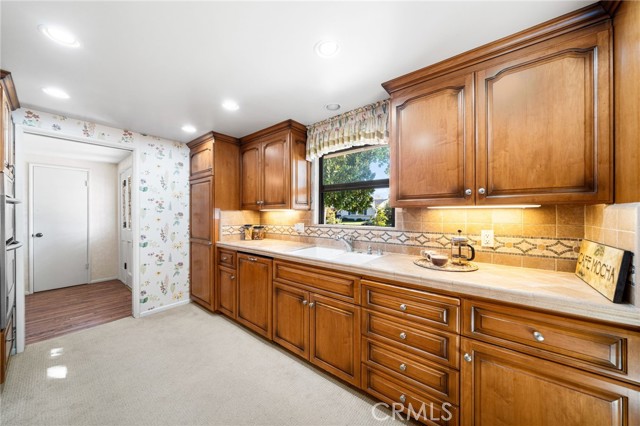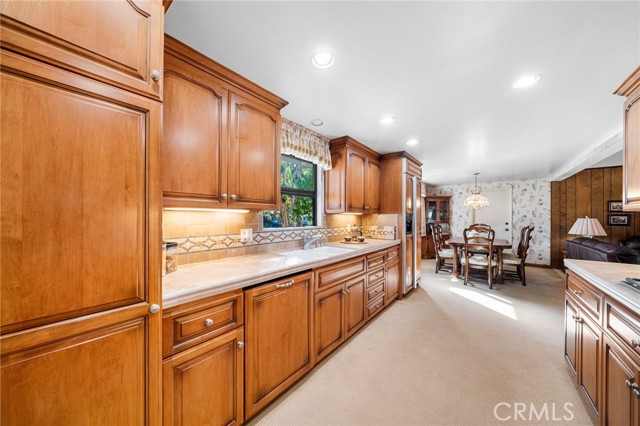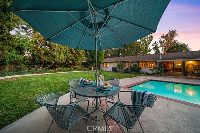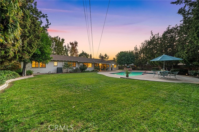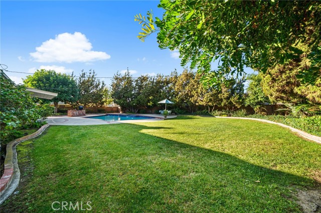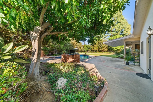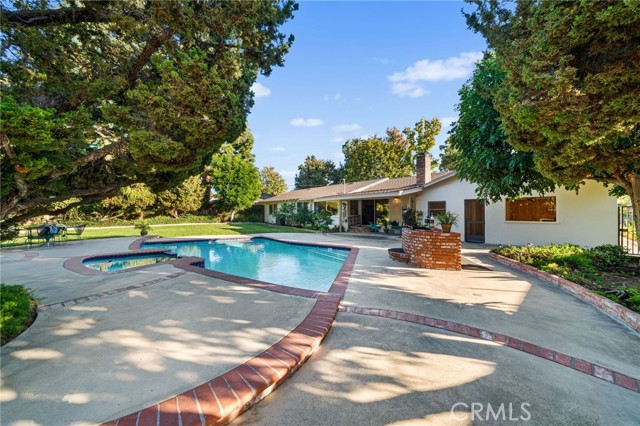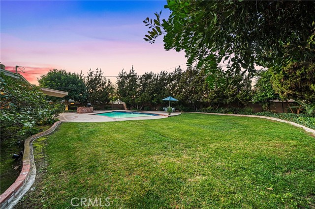 Welcome to Elizabeth Park, built by the Iconic Valentine family in the early 60's, this tract has always been one of the best neighborhoods in Orange! Extra large lot features mature shade trees, a feeling of being away from the big city. The entry has leaded glass door and sidelights that lead to a single story ranch home with a great floorplan. The formal living room has a large sliding door out to the pool and park-like rear yard. There is a mason-built rounded brick fireplace, floor to ceiling with a built-in bookcase/display area. The family room features a large picture window that overlooks the patio and pool. There is an eating area off the kitchen for those stay-at-home meals. The kitchen has the vintage tile that looks like it was installed yesterday with stainless Kitchenaid appliances including a built-in gas range, microwave, electric convection oven and a built-in refrigerator/freezer. This flooplan is classic and functional. There is direct access to an attached 2-car garage with laundry and a utility sink. Behind the garage is a double-door entry to an office and a 3/4 bath, separate from the main house. 3 bedrooms have plantation shutters and custom-built closets with mirrored wardrobe doors. The primary bedroom features an en suite bath with shower, dual sinks and closets. The main bath has a tub/shower accented in tile and glass. The rear yard is a vacation spot all year long. A beautiful pool and spa accented in brick, a custom-built brick BBQ island, seating areas, a covered patio and a 2nd rear yard that is home to the pool equipment, playhouse and garden shed. Make Elizabeth Park your new home.