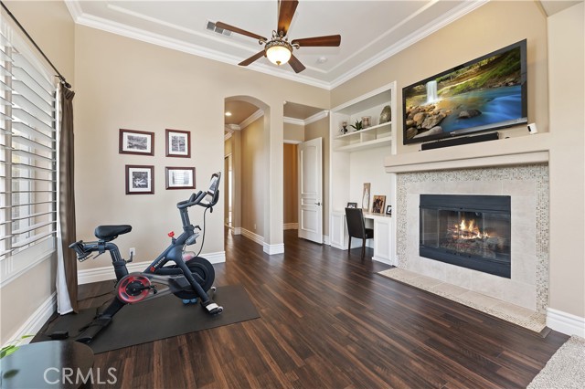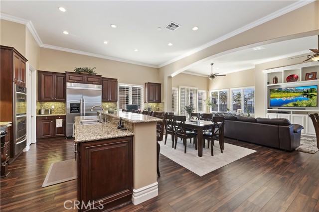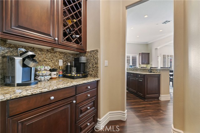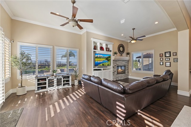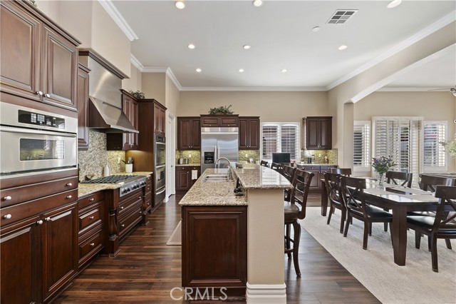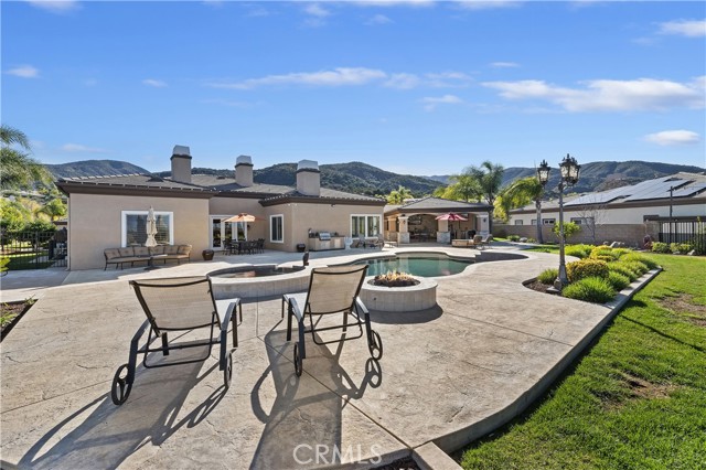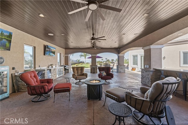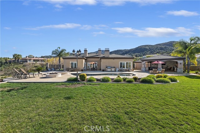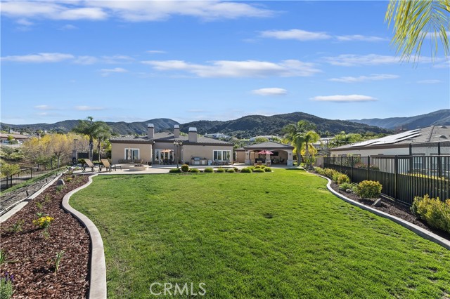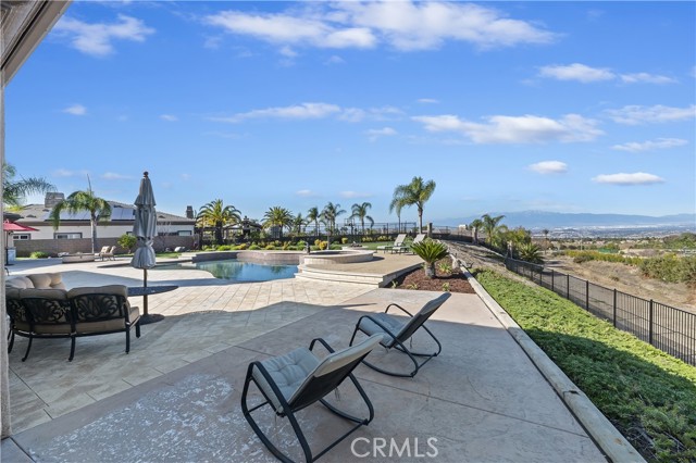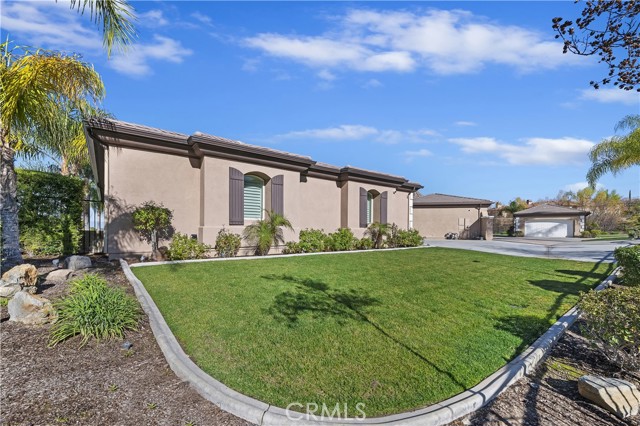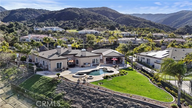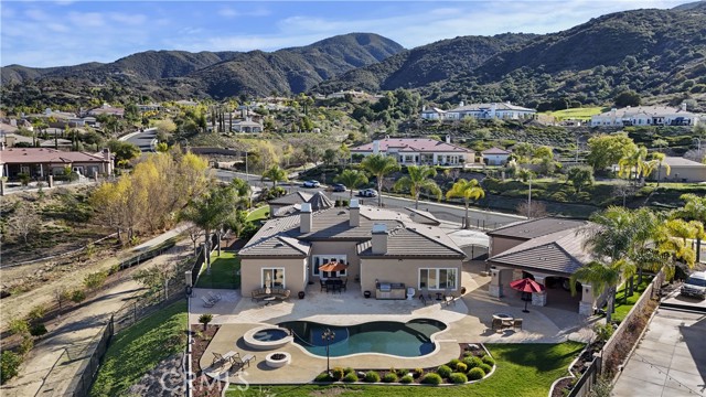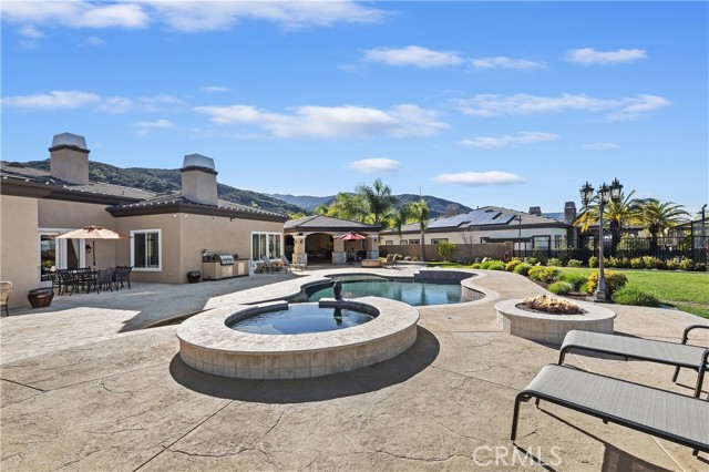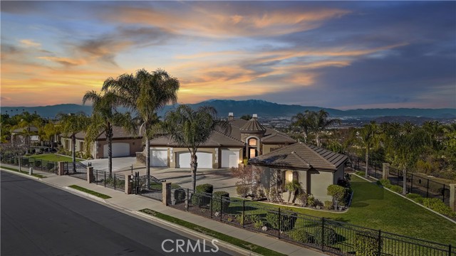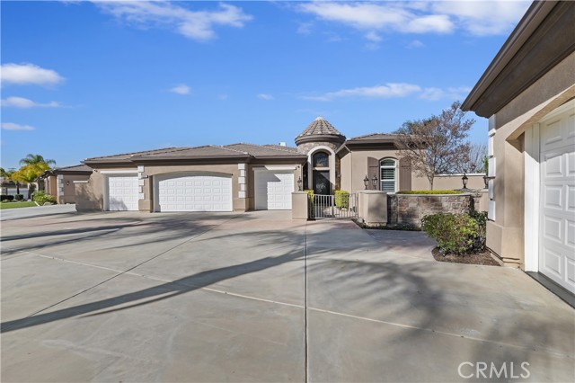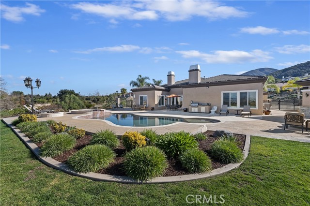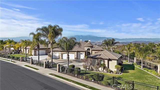 This stunning single-level Amberhill estate in the highly sought-after Pinnacle community offers the perfect combination of luxury, space, and functionality. Spanning 4,058 sq. ft., this meticulously maintained home features four spacious bedrooms and four bathrooms, designed with comfort and entertaining in mind. Car enthusiasts will be impressed by the 12-car garage setup, which includes a 4-car attached garage, a 6-car detached garage, and an additional 2-car detached garage—each featuring epoxy-coated floors and built-in cabinetry, ideal for extra storage or workshop space. Inside, new luxury vinyl plank flooring and plantation shutters complement the home’s elegant and modern design. The family room, complete with a custom-built entertainment center, flows seamlessly into the open-concept chef’s kitchen featuring granite countertops, a 48” built-in refrigerator, dual ovens, a walk-in pantry, and a full bar area perfect for entertaining guests. Step outside into your private backyard oasis with breathtaking views and a 1,250 sq. ft. outdoor living area. Designed for year-round enjoyment, this space includes surround sound, a built-in BBQ, two fire pits, an outdoor refrigerator, and an ice machine. The resort-style pool and spa, easily controlled by the AquaLink system, provide the ultimate retreat. The beautifully landscaped grounds feature custom pavers, stamped concrete, extensive lighting, and 24 mature fruit-bearing trees. A wrought-iron dog run is also conveniently located on the side yard. For added security and peace of mind, the property is fully gated and equipped with an 18-camera security system recording 24/7, plus an additional 12-camera Ring system. Recent upgrades include fresh interior and exterior paint and new 5-ton and 3.5-ton AC units to ensure year-round comfort. This extraordinary estate seamlessly blends modern amenities, timeless design, and resort-style outdoor living—all within one of the most coveted communities. Don’t miss this rare opportunity—schedule your private showing today!