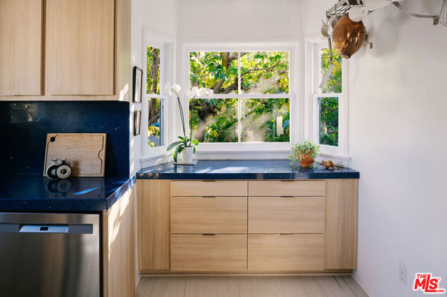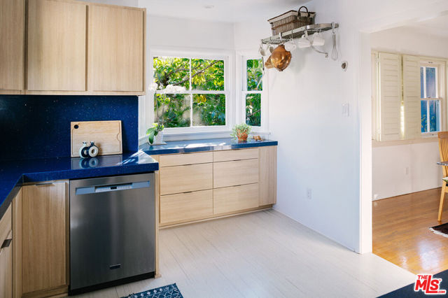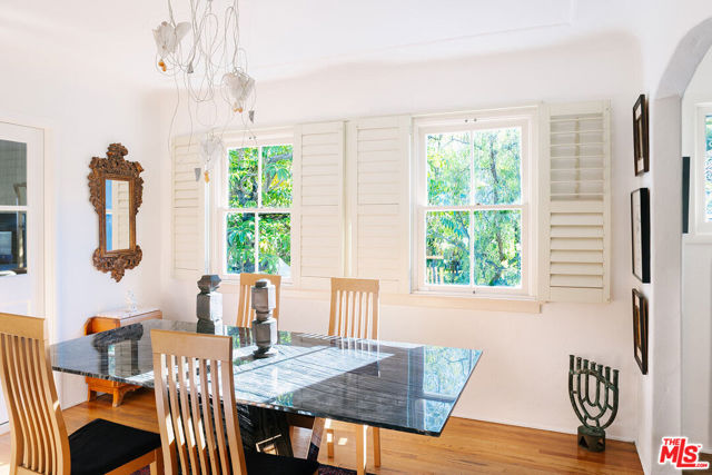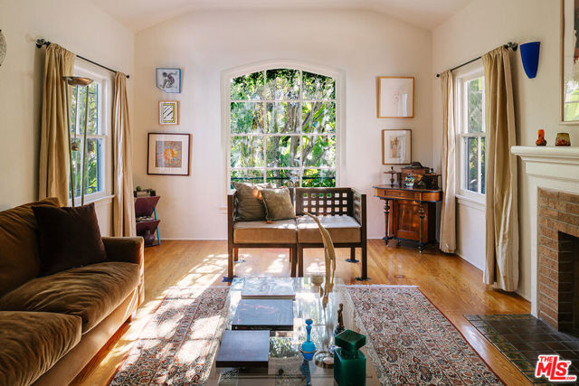 Located in the heart of prime Silver Lake, this enchanting home is a rare blend of timeless character and laid back California living. From the moment you step inside, you're greeted by original details that evoke warmth and charm: coved ceilings, vintage tile, and hardwood floors that tell the story of L.A.'s architectural past. The living room, anchored by a classic fireplace, is bathed in sunlight from a large picture window framed in ivy, an iconic detail that gives the home its storybook appeal. From there, the space flows seamlessly into a formal dining room and the kitchen, which has been thoughtfully updated with newer cabinetry and stainless steel appliances, offering a beautiful balance of style and function. This two bedroom, two bath residence is filled with natural light throughout. The primary suite opens through French doors to a lush backyard deck, creating an easy indoor-outdoor connection. Out back, a grassy yard surrounded by mature trees offers the perfect spot to relax or entertain under the pergola. Beyond the garden sits a separate studio space, ideal for use as a creative workspace or home office. Enjoy being moments away from Silver Lake's best - LAMILL Coffee, L&E Oyster Bar, Botanica, and the Reservoir. Sunset Junction is just minutes away, making this home a soulful retreat in one of L.A.'s most coveted neighborhoods. Silver Lake living at its finest.