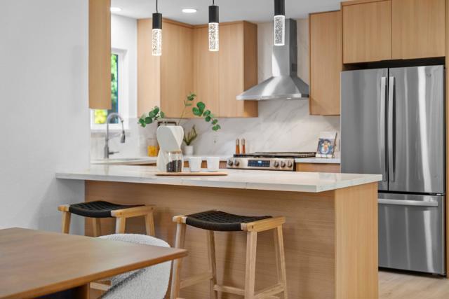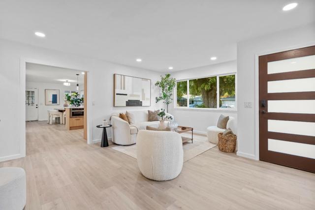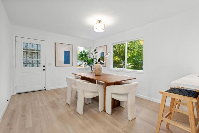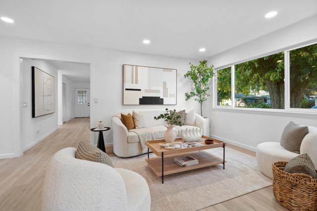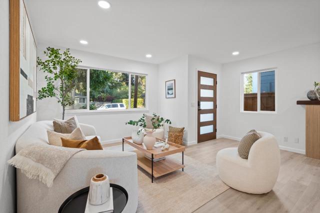 Total 1970 sqft of living space. Situated on a quiet tree-lined street with no back neighbors, this beautifully renovated Menlo Park home blends modern comfort, function, and privacy. The main residence offers 3 bedrooms and 2 bathrooms across 1,290 square feet of bright, inviting interiors. An open-concept layout features a chefs kitchen with custom cabinetry, stainless-steel appliances, and a built-in breakfast nook. The dining and living areas flow seamlessly for everyday living and relaxed entertaining, while both bathrooms are tastefully updated with fresh finishes. A standout detached 680 square foot ADU provides exceptional flexibility with its own full kitchen, living/dining area, bedroom, bath, private entry, and separate driveway ideal for extended family, guests, rental income, or a private office suite. Outdoor spaces include new landscaping, a lush lawn, and a paved patio perfect for dining and unwinding. A rare XL two-car detached garage offers generous storage or workspace potential. Minutes from Meta, Google, Stanford, parks, and top-rated schools, this move-in-ready property offers versatility, convenience, and timeless Menlo Park charm.