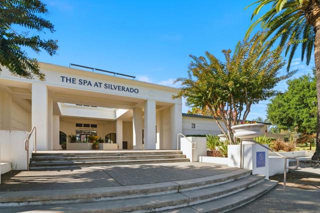 Welcome to a charming, well-appointed condo centrally located in the gated Oak Creek East community amidst the gorgeous Silverado Resort property. This lucrative vacation rental and weekend getaway is just a quick golf cart ride to the Silverado Mansion, Pro Shop, Marketplace and the Grill restaurant. Both bedrooms feature private, updated en-suites. The fully equipped kitchen overlooks the dining area and living room for a comfortable open concept. Enjoy dining indoors or on the patio overlooking the peaceful trees and beautiful landscaping. The living room features high ceilings and custom built-in shelving. In-unit washer and dryer included. Golf cart garage, refreshing pool, and tennis courts are conveniently a short distance away.