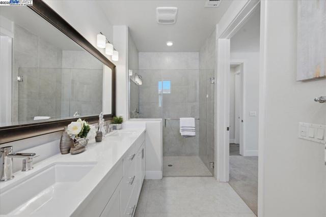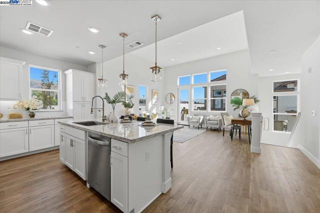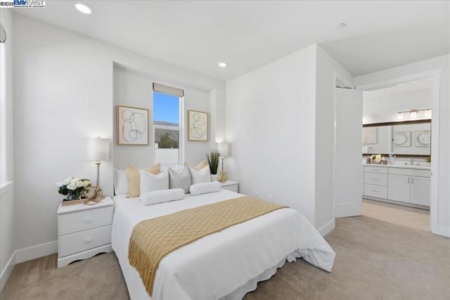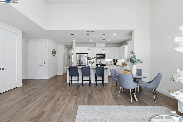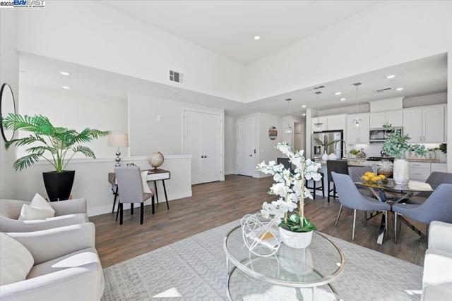 Contemporary Townhome-Style Condo in Prime Warmspring Fremont Location Experience modern elegance and everyday comfort in this beautifully designed 2-bedroom, 2-bath home offering 1,515 sq ft of bright and airy living space. All living areas are thoughtfully located on the top floor, easily accessible by stairs or your own private elevator — a true rare find! The open-concept layout features high ceilings, abundant natural light, and a gourmet kitchen with quartz countertops, stainless-steel appliances, and a spacious island perfect for cooking and entertaining. Retreat to a serene primary suite with a walk-in closet and spacious bathroom, while the second bedroom offers the flexibility for guests or a home office. Enjoy peaceful evenings on your private covered deck. Additional upgrades include LED recessed lighting, a tankless water heater, and a fully paid-off solar system plus paid off water softener for energy efficiency and comfort. Located in the highly desirable Mission Falls community of Fremont. Just minutes from BART, Highways 680 & 880, shopping, dining, and top-rated Irvington schools, this home combines style, convenience, and an exceptional location for today’s modern lifestyle.