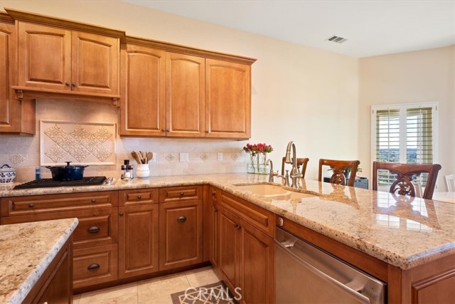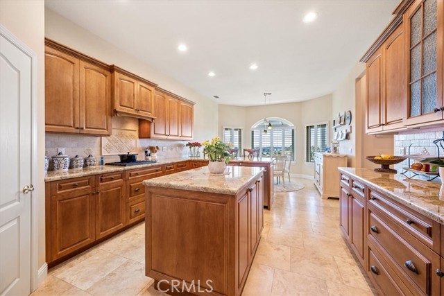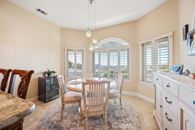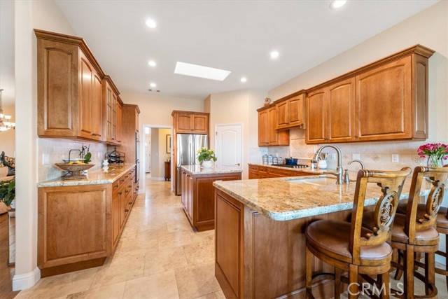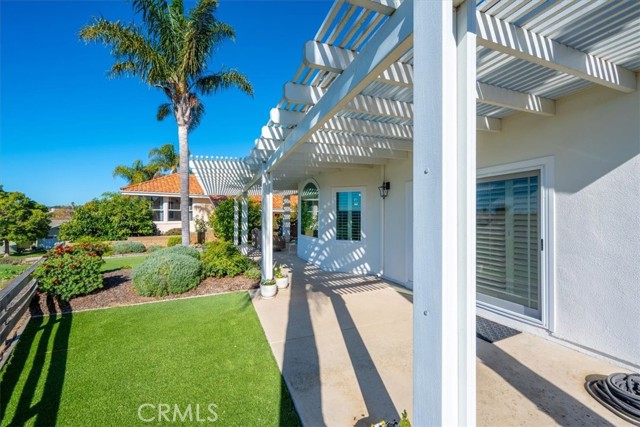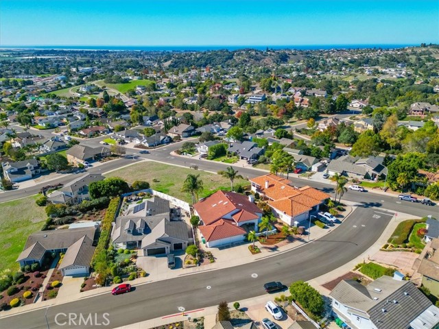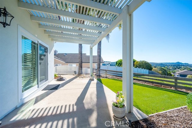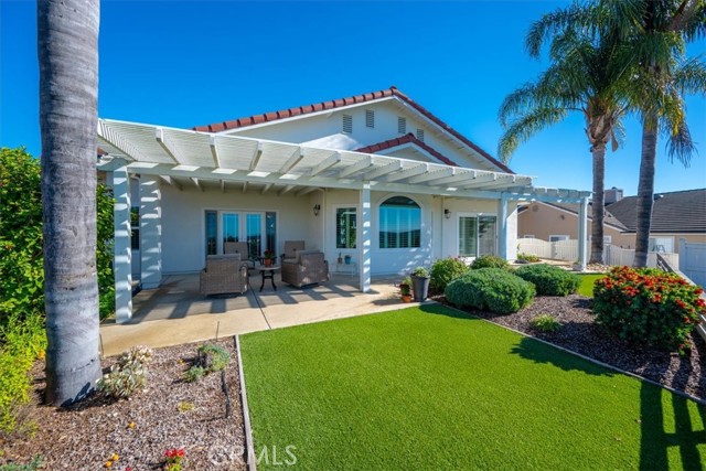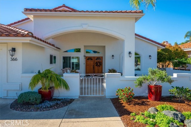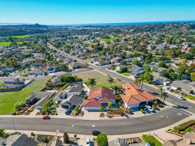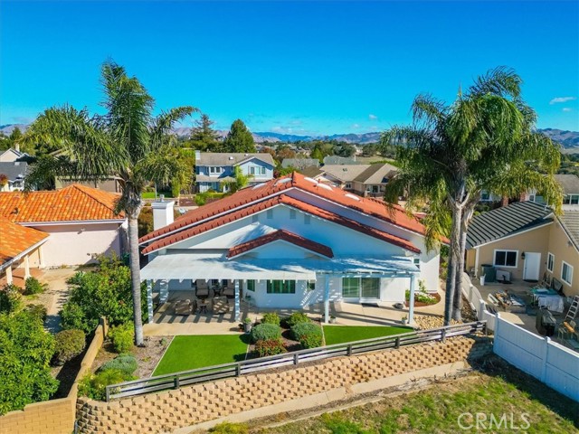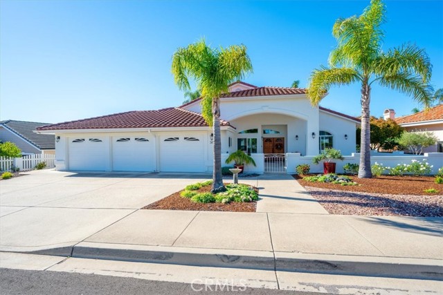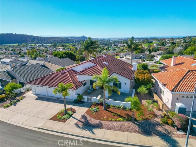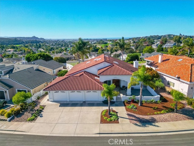 Immaculate single-level, three-bedroom, two-and-a-half-bath Mediterranean-style home located in the desirable Stagecoach neighborhood near the village of Arroyo Grande. Offering 2,660 square feet of thoughtfully designed living space, this property combines quality craftsmanship with relaxed Central Coast living. The remodeled kitchen features high-end appliances, hardwood cabinets, granite countertops, travertine and handmade tile backsplashes. A spacious pantry provides ample storage, while the peninsula bar opens to a welcoming breakfast nook framed by bay windows. The adjoining living and dining rooms include French oak flooring, cathedral ceilings, and a thermostatic gas fireplace that adds warmth and character. Milgard dual-pane windows and French doors fill the space with natural light and lead to a lattice-covered patio with views of the hills, dunes, and ocean beyond—an inviting setting for entertaining or quiet evenings outdoors. The primary suite includes a remodeled bath with marble counters and Kohler fixtures, while the home office and additional bedrooms offer flexibility for guests or creative pursuits. A separate laundry room adds convenience, and a spacious three-car garage provides abundant parking and storage. Additionally, the home features a welcoming front courtyard, low-maintenance landscaping, air conditioning, and skylights that enhance comfort and efficiency. Every detail reflects care and quality, creating a home that is both beautiful and meticulously maintained. Located within the Lucia Mar School District, including Branch Elementary, Paulding Middle, and Arroyo Grande High School, this property offers convenience as well as style. Homes of this caliber are rarely available. Experience the comfort, quality, and ease of Central Coast living in this exceptional Arroyo Grande residence.