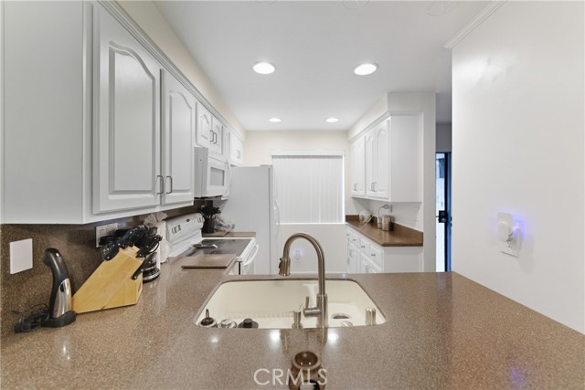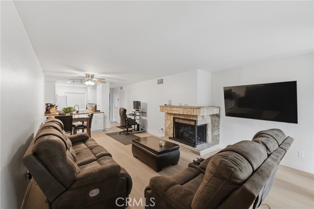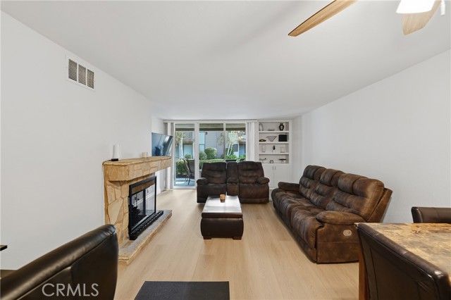Welcome to Quail Creek! This serene, ground-level 2BD/2BA end-unit offers 1,124 sq ft of peaceful living with no stairs and soothing sounds of the creek . Upgrades include a brand-new furnace (2024), A/C (2019), new laminate floors, fresh paint though out, Upgraded bath vanities, kitchen lighting, faucet, and a fully renovated master bath with new fixtures and toilet. The open-concept living room has a fireplace and sliding doors to a private patio. Spacious primary suite with patio access, en-suite bath, and tranquil views. Resort-style amenities: 2 pools, spas, tennis courts, Onsite EV Charging, and lush landscaping. HOA Includes Water, Gas, Trash, & Exterior maintenance. Close to freeways, Irvine Spectrum, and beaches. Don’t miss this rare find!