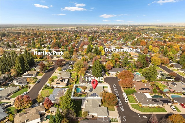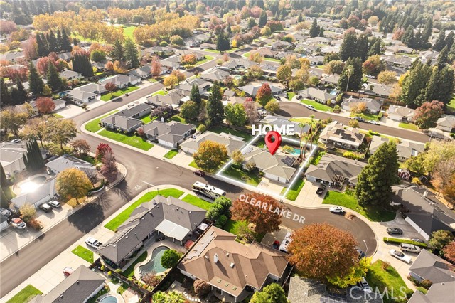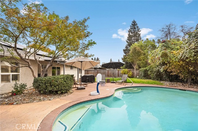 Welcome to 3167 Clear Lake Drive, an opportunity to live in one of Chico’s most desirable neighborhoods, Amber Grove. Known for its wide streets, festive holiday lights, and a sense of community that feels straight out of a storybook, Amber Grove is where every season shines. This home captures all that charm and more, offering 2,498 sq. ft. of beautifully designed living space with flexibility, comfort, and endless possibilities. Thoughtfully laid out with three distinct wings, this 3-bedroom, 2-bathroom home also features two additional rooms, a den, and an office, both of which could easily be converted to bedrooms, giving you the potential for up to five bedrooms total. From the welcoming entry, you’ll immediately feel the spaciousness this home provides. The first wing, just off the entry, includes the den and office, each filled with natural light and built-ins, perfect for working from home, hobbies, or future bedrooms. At the heart of the home, the kitchen is designed for gathering and connection, offering tile countertops, ample cabinetry, a pantry, and bar-top seating that opens to the living room. The open-concept living space features vaulted ceilings, a gas fireplace framed by a masonry hearth, and sliding doors leading to your own backyard oasis. The dining room, located at the front of the home, remains open to the kitchen, perfect for hosting dinners while staying connected to the flow of daily life. Down the second wing are two generously sized bedrooms and a full bathroom with dual sinks, tile counters, and a shower-tub combo. The third wing is dedicated to the primary suite, a peaceful retreat with tile floors, high ceilings, a walk-in closet, an ensuite bath with dual sinks, a soaking tub, and a separate shower, plus private sliding door access to the patio and pool. This wing also includes a laundry room with storage and a utility sink. The 3-car garage features a built-in workbench and storage cabinets, providing functionality and organization for everyday life. Outside, you’ll find an entertainer’s dream with a heated in-ground pool, covered patio, outdoor speakers, and raised garden beds. Energy-efficient features include a brand-new Lennox HVAC system, a power-purchase solar system, newer pool equipment, and a whole-house fan. Tucked on a quiet cul-de-sac just a short walk from Amber Grove Park, 3167 Clear Lake Drive is more than a home; it’s a place where comfort, community, and Chico living come together beautifully.