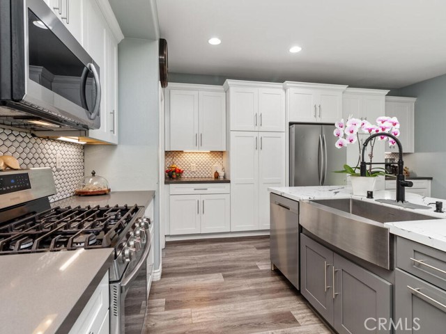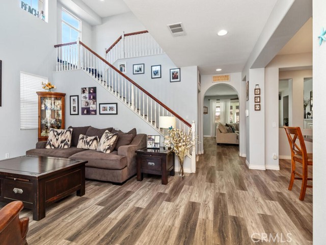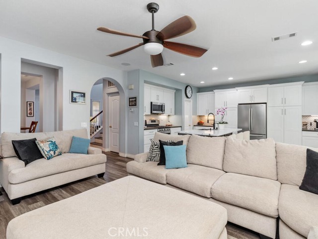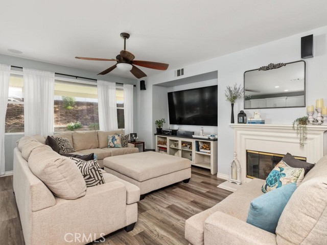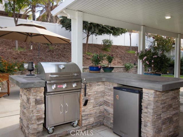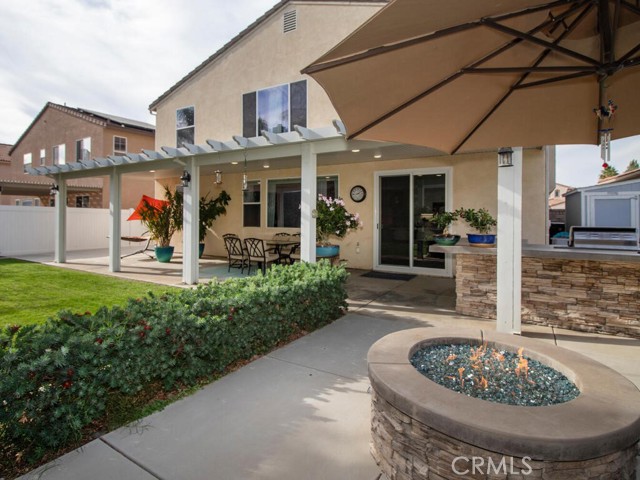 Beautiful 4-bedroom with loft in French Valley area. Inviting entry with front porch and French doors leading into living room. Newly remodeled kitchen with walk in pantry. Bedroom and full bath located downstairs. Hard surface flooring throughout (no carpet). Whole house fan and dual AC. Entertainers backyard with outdoor kitchen featuring built in BBQ and refrigerator. Oversized fully covered alumawood patio with recessed lighting. Gathering area with gas firepit. Large side yards with shed. Vinyl privacy fencing. Three car tandem garage. Low taxes and no HOA. Temecula School District. Lots of new businesses and amenities in the area including parks, gym, shopping and library.