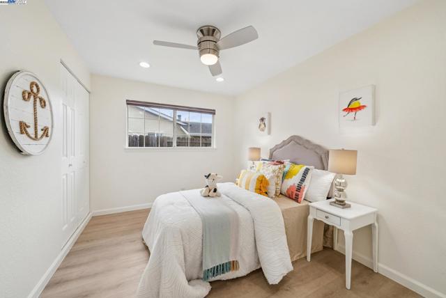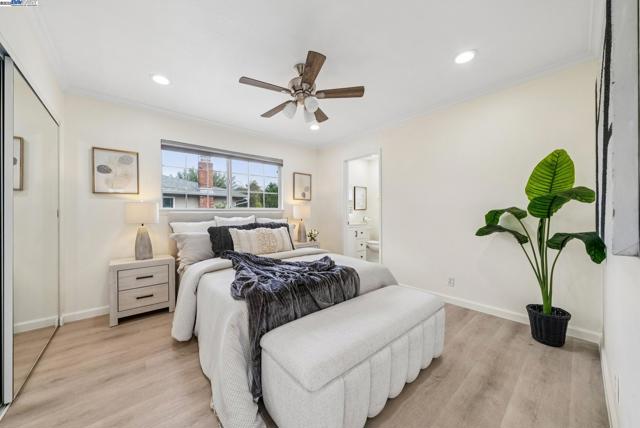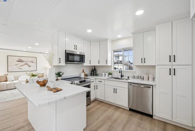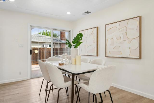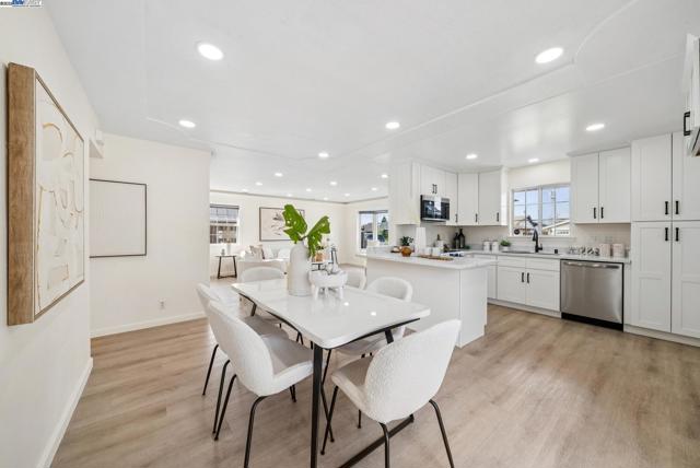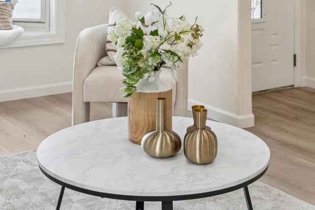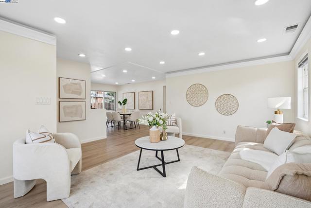 Pristine NORTHWEST facing home with beautiful upgrades! This light-filled residence boasts an open-concept design which blends style, function, and comfort in one. The heart of the home is the brand-new gourmet kitchen featuring sleek stainless-steel appliances, modern cabinetry, and elegant finishes that flow seamlessly into the spacious family room—perfect for both everyday living and entertaining. Both bathrooms have been tastefully upgraded, and every detail of this home has been thoughtfully curated, from new honeycomb blinds on all windows to smart switches and recessed lighting throughout. Enjoy year-round comfort with a complete HVAC upgrade—including a new furnace, new A/C, ductwork, and smart thermostat. Copper plumbing throughout. Step outside to a spacious, professionally landscaped backyard featuring stamped concrete and plenty of room to relax or entertain. The flex space in the yard is perfect for a home office or creative studio, complete with new flooring and paint. The epoxy-finished garage floor adds the final touch of polish and practicality. Easy access to 880, Dumbarton Bridge, 237, BART, and major tech hubs. You don't want to miss this!