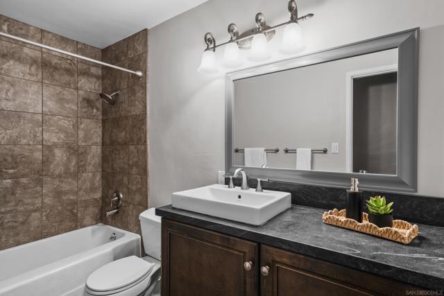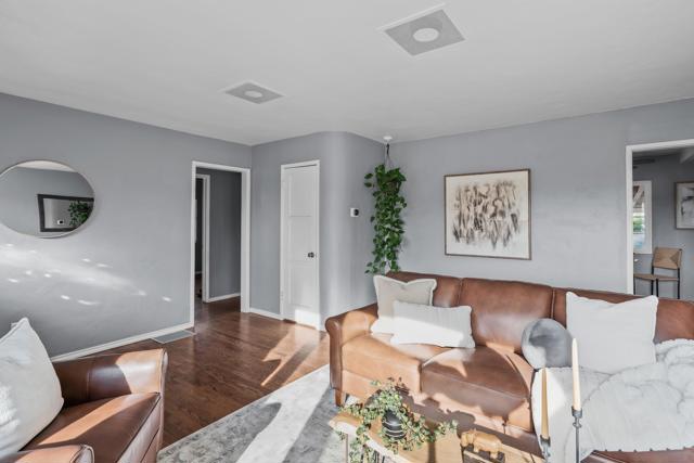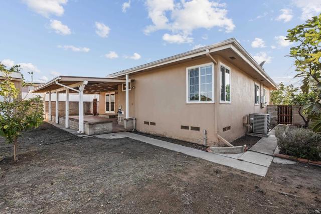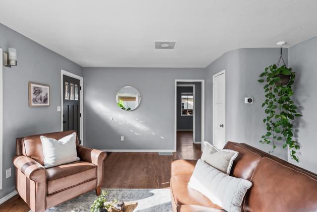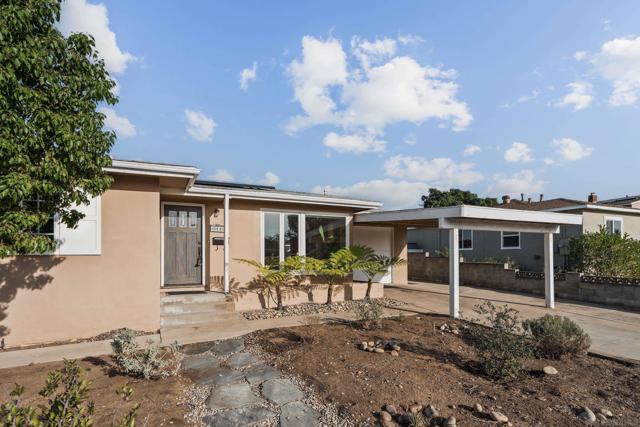 Timeless character meets modern livability in this Rolando Park home, where curved walls, original hardwood floors, and mountain views create a home full of warmth and personality. Tucked away on a peaceful cul-de-sac, midcentury meets timeless modern home. Large picture windows flood the main living area with natural light, highlighting beautiful original hardwood floors and creating an effortless flow between living, dining, kitchen to the outdoors. A distinctive curved wall anchors one corner of the living room, an architectural detail that adds character and a touch of mid-century artistry. The covered patio, easily accessed from both the living area and kitchen, extends your entertaining space outdoors and overlooks the expansive backyard framed by mature fruit trees (Lemon, Persimmon, Fig, Tangerine, Avocado) and mountain views, a serene retreat for relaxing mornings or weekend gatherings. The detached garage offers flexible use as extra storage, a creative workspace, or potential ADU conversion, while the dedicated laundry room and abundant storage room in home. This home provides rare practicality and convenience. Home has solar, forced air heating and central A/C, along with the convenience of a covered driveway for shaded, protected parking. Located in Rolando Park, one of San Diego’s most charming and centrally positioned neighborhoods, residents enjoy a true sense of community paired with easy access to all that the city has to offer. Just minutes from La Mesa Village, San Diego State University, and local favorites like Dark Horse Coffee, Mount Helix & Mission Trails, you’re close to both urban convenience and outdoor adventure. Whether it’s a morning jog through the neighborhood’s tree-lined streets, a weekend hike, or an evening dining al fresco at a nearby restaurant, Rolando Park offers the perfect blend of peaceful living and connected lifestyle. This home embodies everything people love about San Diego, sunlight, character, outdoor living, and a community that feels like home.