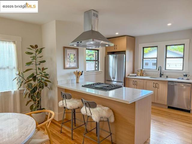 Tucked on a peaceful knoll just blocks from Solano Avenue, this inviting Thousand Oaks bungalow offers an ideal mix of charm, comfort, and thoughtful upgrades. The newly paved driveway leads to a welcoming front porch and an easy, one-level layout with two bedrooms and a refreshed Jack-and-Jill bath. Bright, connected living spaces with a fireplace, and hardwood floors that create effortless flow. The lovely open kitchen (with new cabinetry, counters, and appliances) is made for conversation while cooking up fresh finds from the nearby farmers market. In the sunny backyard, enjoy a laid-back dinner, catch up with friends, or unwind in the peaceful garden setting. The improved garage, with carriage doors and skylights, would be a fantastic office, art studio, rec room, or home gym. Rated “Very Walkable,” with a quiet residential feel and easy access to shops, cafés, and restaurants, this home delivers both everyday ease and high quality of life!