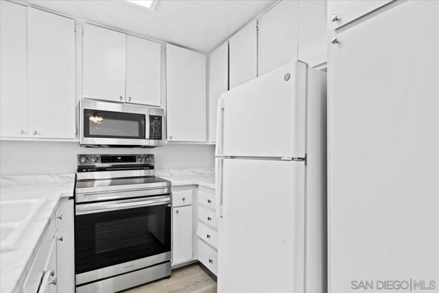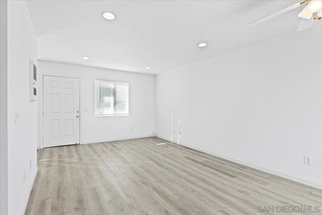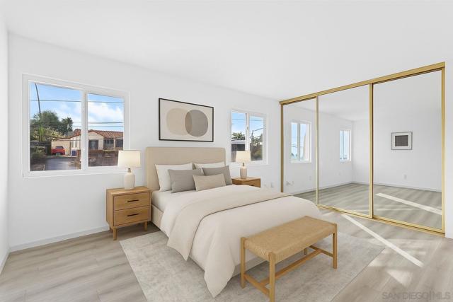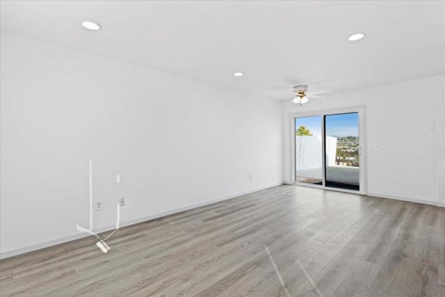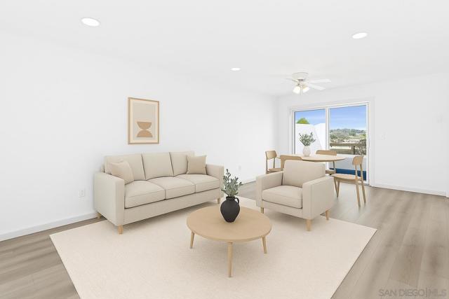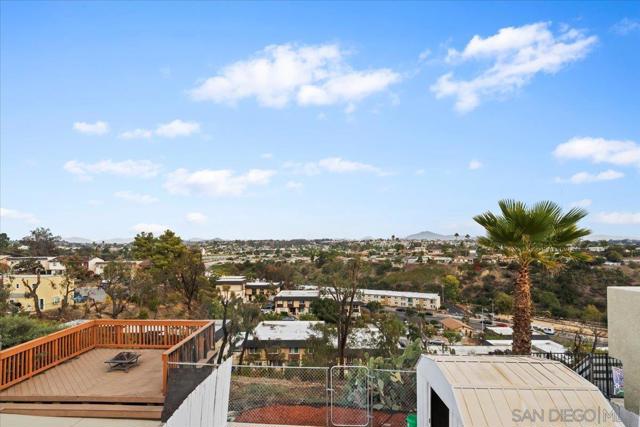 Discover this beautifully remodeled, turn-key residence showcasing sweeping canyon and neighborhood views from its expansive, elevated lot. Recently updated with designer-selected paint and new luxury vinyl plank flooring throughout, the home welcomes you with a bright, open living space that flows seamlessly into the dining area and view-oriented kitchen. The kitchen offers abundant cabinetry and stainless steel appliances, all positioned to capture serene vistas of the canyons and distant mountains. The expansive backyard invites effortless outdoor living, featuring a spacious patio and endless potential as the usable yard extends well beyond the existing fence line. Upstairs, two generously sized bedrooms and a tastefully updated bathroom create a comfortable and tranquil private retreat. Attached on only one side—with no neighbors above or below—the home lives like a detached property and offers the rare benefit of NO HOA fees. Additional highlights include a full-size laundry area, four dedicated parking spaces and a convenient storage shed. Ideally situated near shops, schools, parks and scenic hiking trails, and just minutes to major freeways and Balboa Park, this exceptional opportunity combines comfort, convenience, and captivating views.