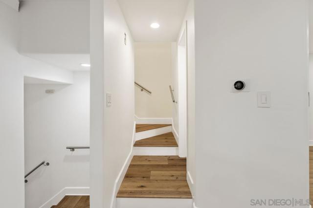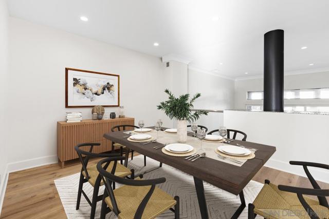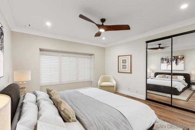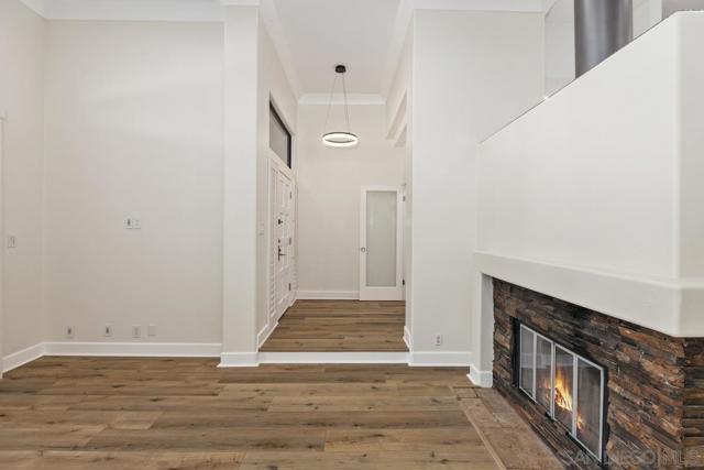 Experience refined luxury in this beautifully renovated 3-bedroom, 3-bath townhouse filled with natural light. Morning sunshine brightens the living room and front bedroom, while afternoon light enhances the family room and kitchen. Enjoy refreshing cross-breezes on warm days and added privacy with serene greenbelt views. Just steps from the world-class UTC Mall, this home offers both convenience and tranquility. This stunning multi-level residence features an open, airy floor plan designed for comfort and privacy. The main living areas span the first two levels, while all bedrooms are privately located upstairs. Soaring ceilings with elegant crown molding, designer plank flooring, custom LED lighting, and fresh neutral paint create a sophisticated, modern ambiance. The gourmet kitchen is fully upgraded with granite countertops and premium finishes. The spacious living room boasts a dramatic two-story ceiling and a cozy fireplace, complemented by large windows that flood the home with natural light. Enjoy seamless indoor-outdoor living with a private balcony and a large patio overlooking the greenbelt—perfect for morning coffee, evening wine, or entertaining. Luxurious bathrooms feature marble finishes with contemporary gold accents, and all bedrooms offer high ceilings with designer ceiling fans. Additional features include a two-car garage with a Bosch washer and dryer. Residents enjoy resort-style amenities such as a heated pool and spa, clubhouse, ample guest parking, EV charging stations, and central forced heating and air conditioning.