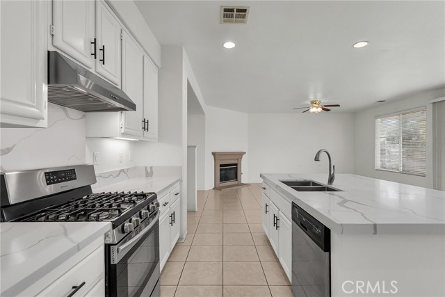 Welcome to this bright and inviting single-story home featuring an open floor plan filled with natural light. Situated on a desirable corner lot, this residence offers comfort, style, and functionality throughout. The updated kitchen is a true centerpiece, showcasing a large center island with bar seating, sleek quartz countertops, and modern finishes. The kitchen opens seamlessly to the spacious living room, where an oversized layout and cozy fireplace create the perfect gathering space for family and friends. An open office area provides flexibility for work or study, while two well-appointed guest bedrooms share a full guest bathroom. The private primary suite is thoughtfully located on its own side of the home, offering a peaceful retreat with ample space and comfort. Additional features include a convenient laundry room with built-in storage, washer and dryer included, and a two-car garage. With no HOA, low taxes, and placement in the highly rated Temecula Unified School District, this home combines ease of living with exceptional value. Don’t miss this opportunity to own a beautifully maintained home that truly has it all!