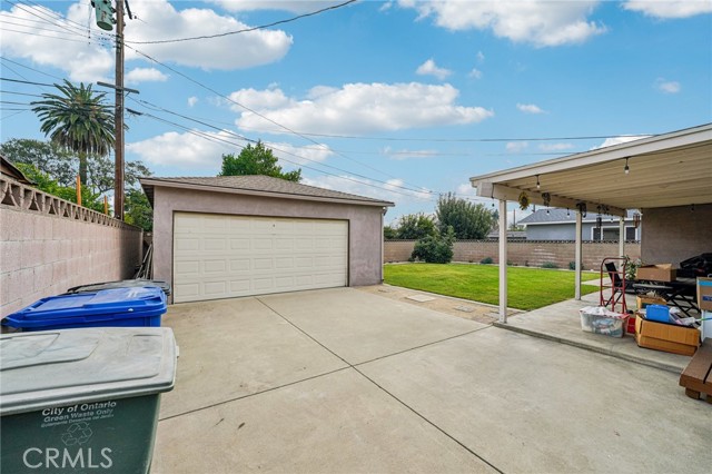 Discover this well-maintained single-story home in the heart of Ontario, offering comfort, charm, and thoughtful upgrades throughout. This inviting residence features 3 spacious bedrooms and 2 full bathrooms, along with paid solar for energy efficiency and peace of mind. Step inside to find fresh interior paint and beautifully preserved original hardwood floors that enhance the home’s classic appeal. The updated kitchen boasts granite countertops, ample cabinetry, and a cozy dining nook perfectly positioned to enjoy stunning sunset views. The light-filled living room offers a picturesque view along with a warm and welcoming fireplace, ideal for relaxing evenings. A detached 2-car garage provides flexible options for storage, workspace, or the potential for an ADU conversion. Outdoors, a charming covered patio overlooks the manicured landscaping, creating a serene setting for entertaining or unwinding. Move-in ready and full of character, this Ontario gem is one you won’t want to miss!