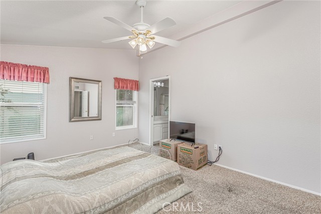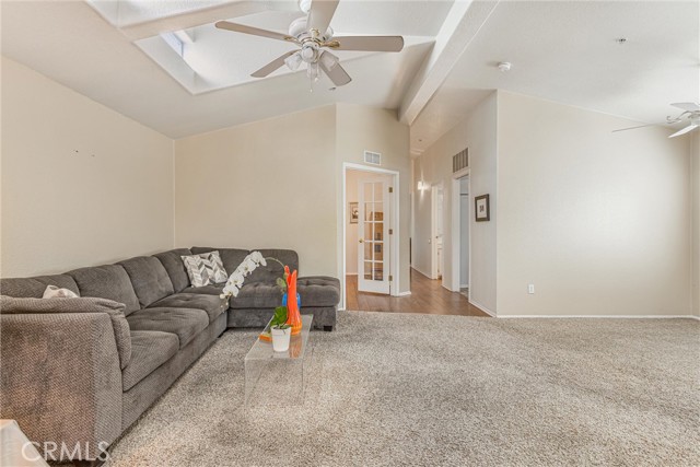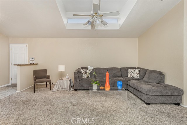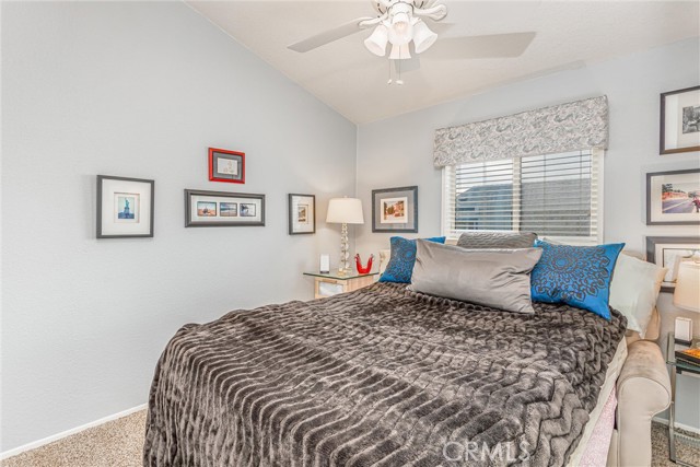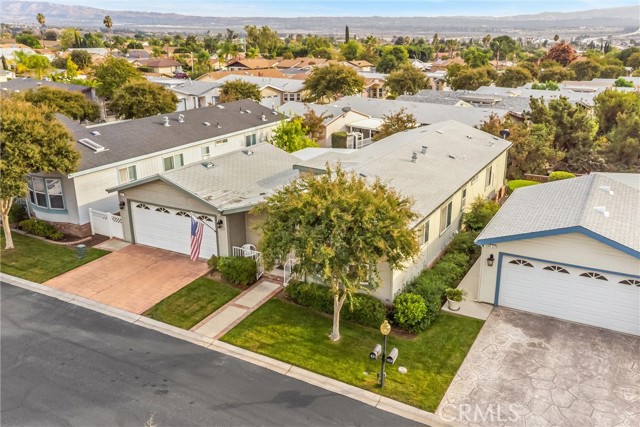 Welcome to this Beautiful home located in Valencia Lea 55+ park. It is one of the most prestigious areas it is nestled at the base of the gorgeous San Bernardino mountains close to shopping centers, freeways , Restaurant's and Costco. This charming home has 1392 sq ft with 2 bedrooms with an extra room used for and office or etc. Spacious living room, Kitchen has granite counters tops and great view of the mountains from the Kitchen Window.Dining is off the Kitchen area. The primary room has a walk-in closet, primary bathroom offers walk-in bathtub. For your convenience there is an indoor laundry room with storage cabinets, there are fans throughout, recessed lighting skylights and vaulted ceiling. Security door on the front door. Slider door leading out to the large covered patio great for relaxing or entertaining and the sound of the pond near by.Enjoy the amenities pool, spa, 2 club houses, Library, fitness room, creeks, ponds, walking trails and putting green. This house is in a great location..MUST SEE !