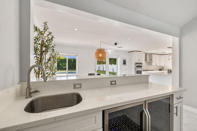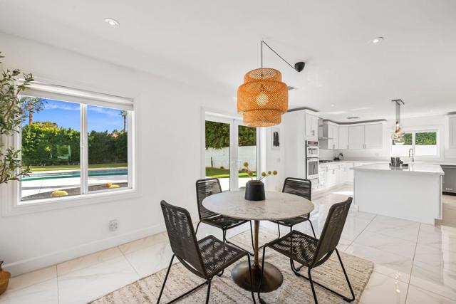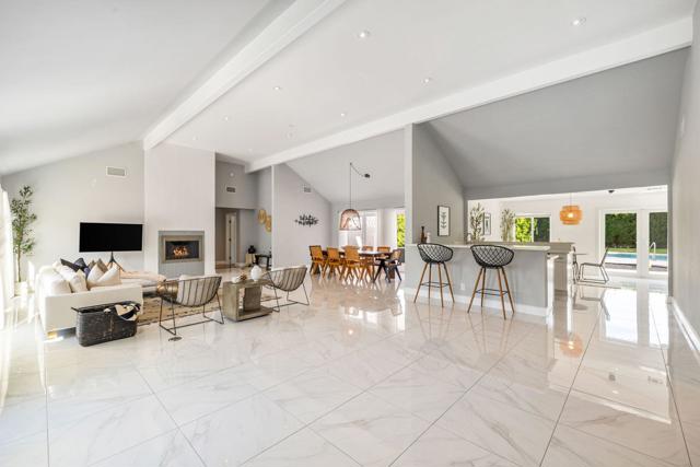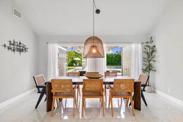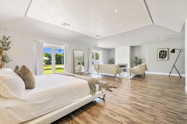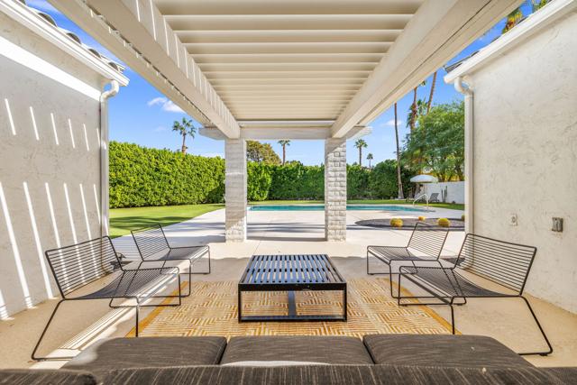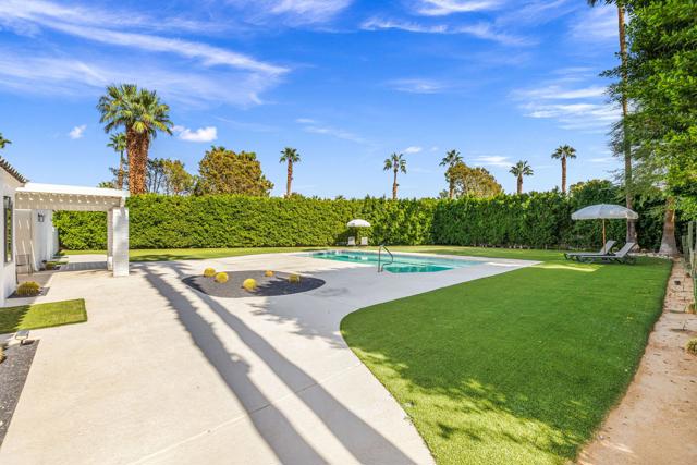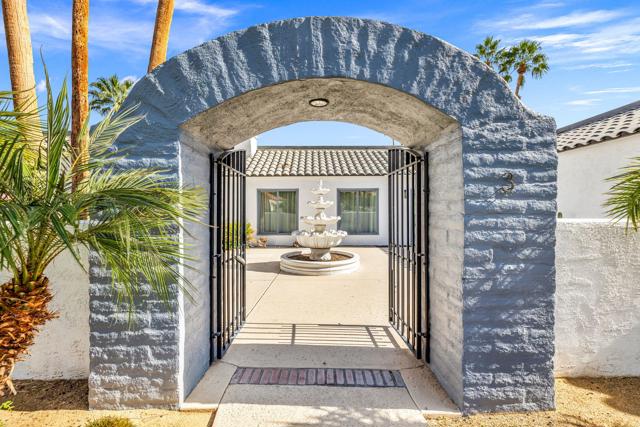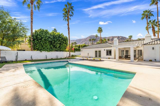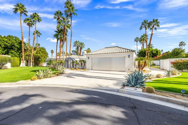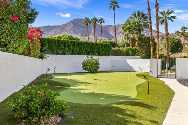 Perched on a generous half-acre within the prestigious guard-gated enclave of Thunderbird Heights, this sophisticated 4-bedroom, 4.5-bath luxury estate seamlessly blends modern design with effortless desert elegance. Ideally tucked at the end of a private cul-de-sac, the residence welcomes you with a spacious gated courtyard, a charming fountain, and striking mountain views.Inside, a dramatic entry sets the tone with soaring vaulted ceilings and sweeping walls of glass that flood the home with natural light. The expansive great room is designed for both grand entertaining and everyday comfort, offering refined living and dining areas with seamless indoor-outdoor flow. A formal dining room overlooks the resort-style pool terrace, while a stylish entertainer's bar, intimate breakfast nook, and gourmet chef's kitchen complete the heart of the home. The kitchen features quartz countertops, updated cabinetry, custom lighting, and stainless-steel appliances.The grand primary suite serves as a serene private retreat, highlighted by a cozy gas fireplace, tranquil backyard views, and spa-inspired touches including a beautifully upgraded shower and door to a private jacuzzi. Thoughtfully positioned for privacy, the primary is separate from the other spacious guest bedrooms.Designed for relaxed desert luxury, the backyard invites you to unwind with striking views, a sparkling pool, lush mature landscaping, expansive low-maintenance artificial turf, and a private 7-hole putting green. This exceptional estate delivers the ultimate in privacy, sophistication, and the elevated lifestyle that defines Thunderbird Heights in the heart of Rancho Mirage.