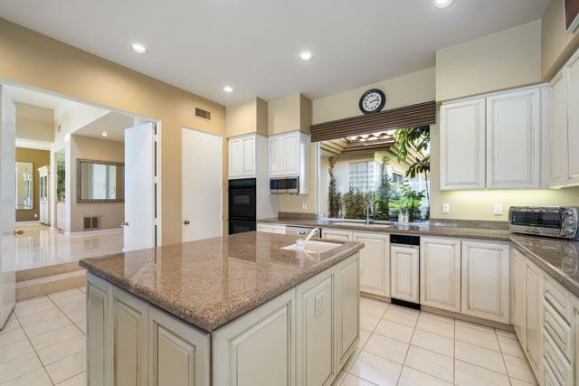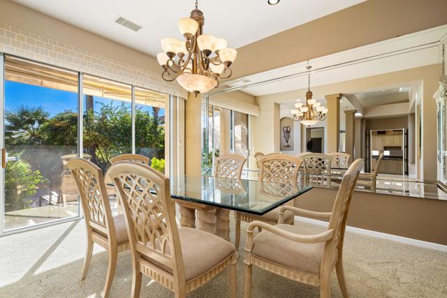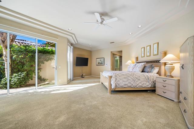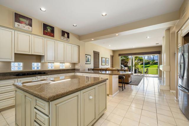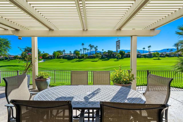 Unparalleled South Views! Currently the lowest-priced 4-bedroom home in Indian Ridge Country Club! Located on an interior cul-de-sac, this Smoketree 5 model offers 3,562 sq.ft. of elegant living space with four ensuite bedrooms and panoramic southern mountain and course views of Grove #4 of this Arnold Palmer Signature Golf Course. Club Membership available to Buyer with no wait (Golf Memberships are available via waitlist). The south-facing patio provides a covered outdoor area, built-in BBQ & private spa - perfect for entertaining or relaxing. A separate patio with a tranquil fountain is accessible from both the primary suite and a guest suite, creating multiple outdoor retreats. Inside, the living, family, and dining rooms all open to the patio - soaring ceilings with clerestory windows fill the living space with natural light and frame the stunning golf course views! Enjoy a dual-sided fireplace, custom built-ins, and a wet bar adjacent to the dining room for effortless entertaining. The kitchen features light cabinetry, granite countertops, a large center island, and a counter bar with seating that flows seamlessly into the family room with direct patio access. The primary suite is a true retreat with a generous sitting area, dual closets (including a spacious walk-in), and a spa-inspired ensuite bathroom with dual vanities, soaking tub, and separate shower. Each of the three guest bedrooms includes a private ensuite bath, ensuring comfort and privacy for family and guests. Attached 2-car garage plus golf cart space with direct home access. The home is conveniently located just a few houses from one of Indian Ridge's many community pools and spas, and near ''Rover's Ridge'', IRCC's private dog park. HOA monthly dues include security, cable & internet, all gardening, exterior paint, roof maintenance, exterior water, exterior pest control and trash. Indian Ridge CC features two Arnold Palmer Signature golf courses, tennis/ pickleball facilities, a fitness center, a full-service spa, two restaurants, 38 community pools/spas & active social calendar. Come Join the Fun!