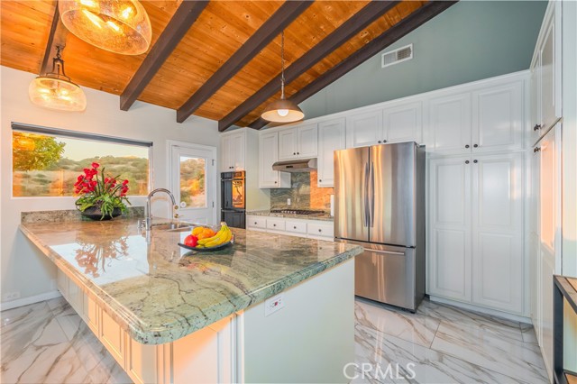 VIEW, VIEW, VIEW. This hilltop panoramic city lights custom built home located in the prestigious community of Claraboya. It features 3 bedrooms & 2 bathrooms with 48,322 SF lot size. Large living with vaulted ceilings and open to the dining room perfect to entertaining family and friends. Luxury tile flooring, upgraded windows and sliding doors throughout. All the bathrooms has been newly upgraded. Chef’s gourmet kitchen with granite counters, large center island, built-in stainless steel appliances w/ Bosch 5 burner gas range & double oven, it also adjoining to the family room with cozy fireplace. Luxurious master suite with newly remodeled bathroom and sliding door that open to the backyard to enjoy the breathtaking view. Very private backyard to enjoy the beautiful canyon, the valley w/ city twinkling lights & stunning sunsets view. Attached 2-car garage with EV charger. Walking distance to trails. Only a minutes to The Webb private school. Close to shopping center, Claremont Village and Claremont 5 Colleges.
