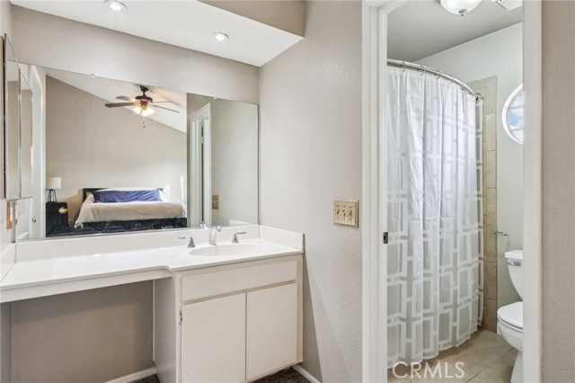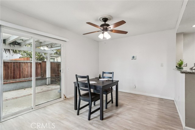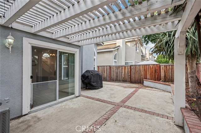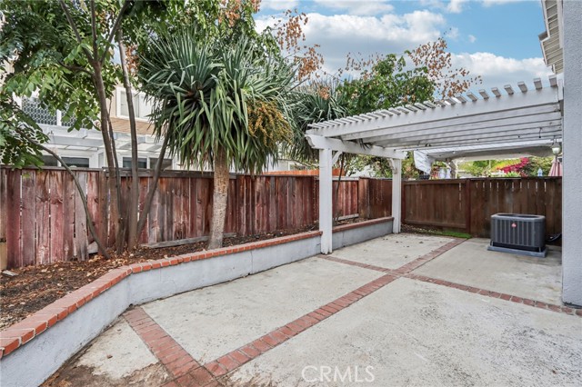This beautifully maintained townhouse offers a bright and open interior with vaulted ceilings and laminate flooring throughout. The inviting living room features a cozy fireplace and flows seamlessly into the dining area with a slider opening to a spacious private patio—complete with a pergola, mature trees, and plenty of room for dining, lounging, and BBQs. The kitchen includes granite countertops, stainless steel appliances, and convenient access to the laundry room, powder room, and direct entry to the attached two-car garage. Recent upgrades include a new A/C (2025) with 10-year warranty, new heater (2024) with QuietCool system, and a new water heater (2023)—offering comfort and peace of mind for years to come. Upstairs, you’ll find two bedrooms each with its own en suite bathroom, including a primary suite with a walk-in closet. Located in the desirable Hampshire Villas community with low HOA fees, residents enjoy well-manicured grounds, a sparkling pool and spa, BBQ areas, and a basketball court. Conveniently close to markets, schools, shopping, dining, and major freeways—this home combines modern comfort, energy efficiency, and an ideal Southern California lifestyle.