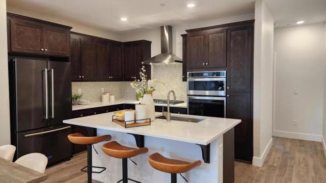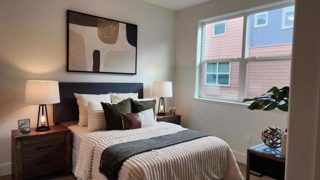 This spacious, well-maintained tri-level contemporary townhome features 3BD/3BA with 1661 sqft living space, built in 2018 by Pulte. Nestled at the rear of the community, it offers enhanced privacy and an unobstructed, beautiful landscape view from every floor. Large windows bring in ample natural light throughout. The second floor features newly installed luxury vinyl flooring and an open-concept layout that seamlessly integrates the living room and kitchen into a highly efficient and comfortable space. This level also includes a versatile bedroom and a full bathroomperfect for guests or a home office. The kitchen is equipped with a large island, stainless steel appliances, and elegant dark Shaker cabinets. The third floor includes two spacious primary suites, each with generous closets and excellent privacy. Additional highlights include a low HOA fee and convenient access to Highways 101, 880, and 680, as well as the Berryessa / North San José BART Station and Google/Facebook shuttle stops. The home is close to major grocery stores such as Costco, Ranch 99, and H-Mart, and just minutes from Downtown San Josés restaurants, museums, and local attractions. This is an ideal starter home, don't miss the opportunity!