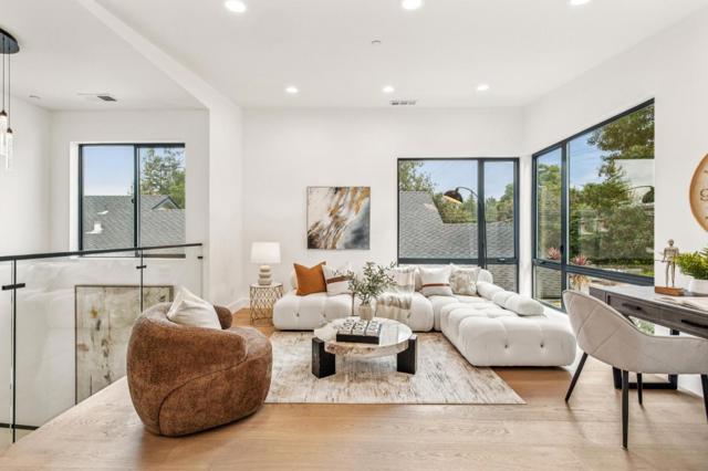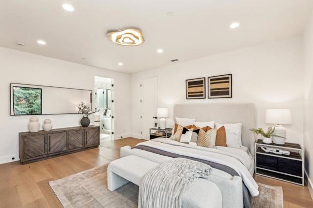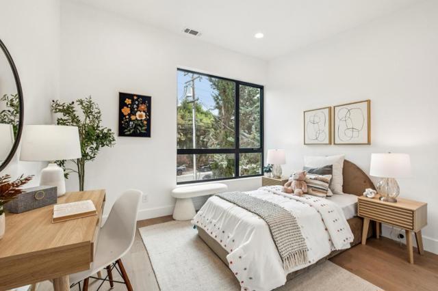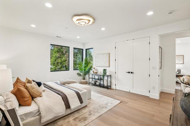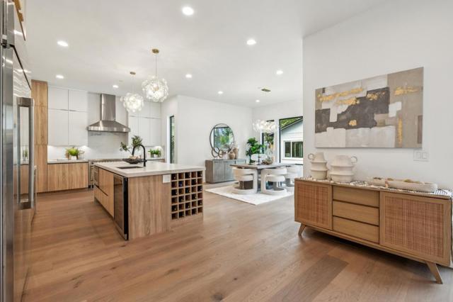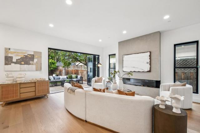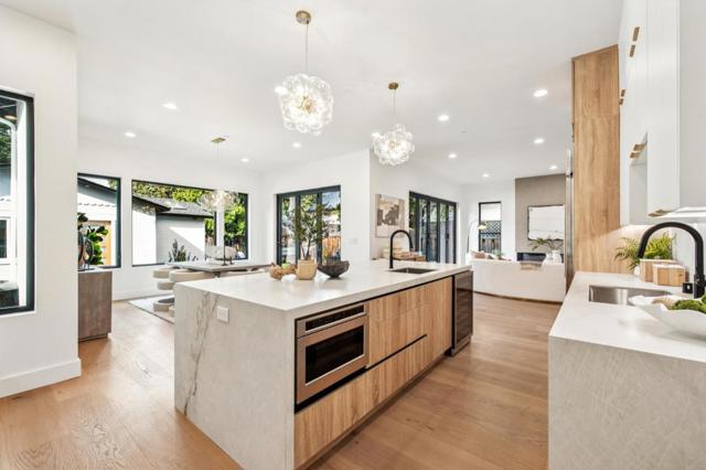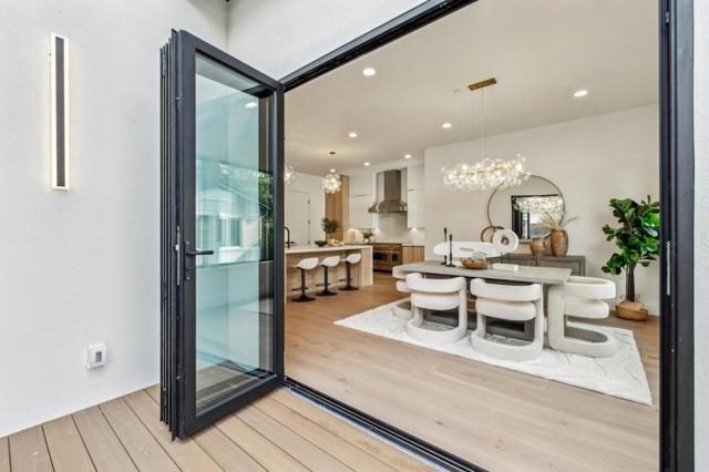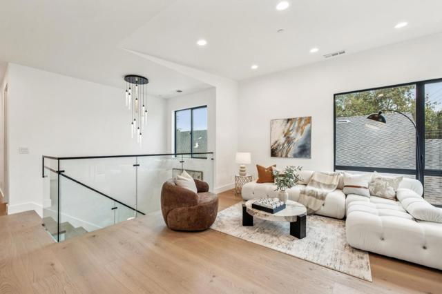 Brand-new 2025 construction, this ultra-luxury home showcases soaring ceilings, a dramatic great room with a striking designer fireplace, and a chefs kitchen appointed with high-end luxury appliances and premium finishes. Adjacent to the kitchen is a stunning dining area that seamlessly connects to the family room, creating an ideal setting for effortless gatherings. The main home is enhanced with roof-mounted solar panels for modern, energy-efficient living. Beautiful hardwood floors extend throughout, adding warmth and sophistication to every room. Custom bi-fold doors open to a beautifully designed backyard, creating seamless indoor outdoor living ideal for refined entertaining. A sleek glass staircase leads to four upstairs bedrooms and a stylish family/game loft, while a fifth bedroom on the main level provides elegant guest accommodations. The primary suite features a spacious spa-inspired bath with custom stone detailing and a sophisticated modern aesthetic. A separate, fully finished modern ADU mirrors the homes elevated design and craftsmanship. Designer lighting is showcased throughout. The home reflects exceptional craftsmanship, elevated design, and luxury at its finest.