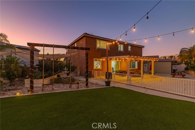 Welcome to this beautifully upgraded cul de sac home that truly feels better than new! From the moment you arrive, you’ll be impressed by the low-maintenance curb appeal, welcoming front porch, and extended driveway leading to a three-car garage with RV parking and backyard access. This spacious home boasts 3,452 sq. ft. of elegant living space on an 11,761 sq. ft. pool-sized lot, perfectly designed for modern living and entertaining. The open floor plan features a grand foyer, upgraded wood vinyl flooring, new baseboards, and custom shutters throughout. The heart of the home is the gourmet chef’s kitchen, complete with updated quartz countertops, stainless steel appliances, double oven, butler’s pantry, walk-in pantry, and a large center island—perfect for hosting family and friends. The kitchen seamlessly opens to the spacious family room with a cozy upgraded fireplace, creating an inviting space to relax and unwind. This home offers 5 bedrooms, each with its own walk-in closet, including a main-level bedroom and bathroom ideal for guests or multigenerational living. Upstairs, you’ll find a large loft—perfect as a game room, office, or media space—and a spacious laundry room with extra storage. Step outside to enjoy a backyard designed for entertaining and functionality, featuring new concrete around the entire property, new exterior lighting, RV parking, a wrought iron gate, newer playground, and a 12' x 21' shed—perfect for a man cave or workshop, artificial turf backyard that saves you thousands in maintenance and allows for fantastic event hosting. Best of all, the solar panels are paid off, offering energy efficiency and long-term savings. Located on a quiet cul-de-sac, this home truly has it all—style, space, upgrades, and exceptional value. Hands down the best value for your overall investment. New construction down the street that you have to upgrade or save tens thousands and time in already in place upgrades? For those that understand real cost, this one is the best value in the area hands down!