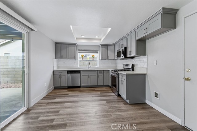 Located in the highly desirable area of Rancho Cucamonga, this beautifully updated home offers 3 bedrooms, 2.5 bathrooms, and 1,712 square feet of well-designed living space. Built in 1978 and thoughtfully modernized, the residence features impressive vaulted ceilings, abundant natural light, updated flooring throughout, and double-pane windows for enhanced comfort. Just off the living room, the dining room offers an easy indoor-outdoor flow with a sliding glass door leading to the side yard. The remodeled kitchen includes quartz countertops, shaker cabinetry, stainless steel appliances, and a spacious dining area with sliding doors that open to the backyard. A rare downstairs bonus room with its own bathroom provides excellent flexibility for extended family, guests, or a private office. Upstairs, the primary suite is complemented by two additional bedrooms and a well-appointed hallway bath. The upstairs loft serves as a functional flex space ideal for an office, study, or bonus living area. The backyard features a covered patio and a spacious outdoor area perfect for family gatherings and entertaining, offering ample room for future customization. Additional highlights include an indoor laundry area and an attached two-car garage. With top-rated schools, parks, hiking trails, Victoria Gardens, and major freeways all nearby, this home combines comfort, convenience, and an exceptional location.