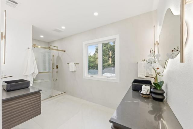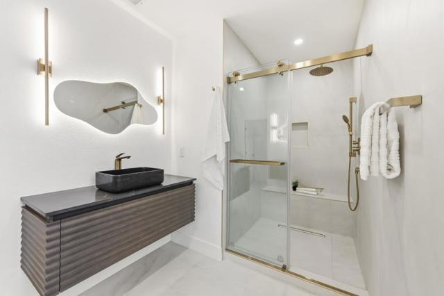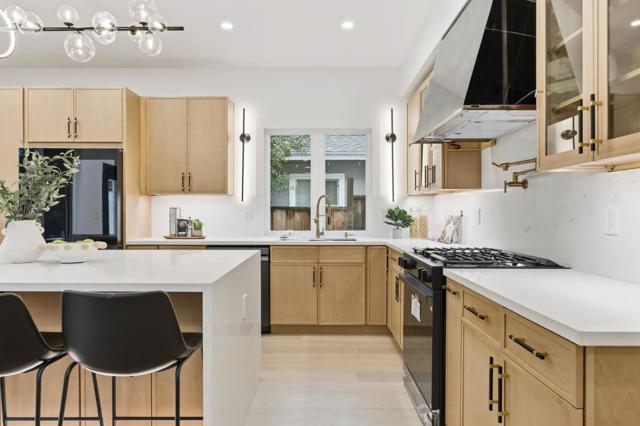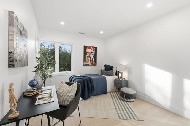 Cuesta Park masterpiece with stunning new construction! This exceptional 4BR/3.5 BA, 2,230 sq ft home has been reimagined with designer flooring, energy-efficient windows, modern fixtures, new roof, contemporary lighting, and state-of-the-art systems. Step into an open layout with recessed lighting, electric fireplace, and smart home conveniences. A bedroom and full bath downstairs provide versatile living. The chef's kitchen shines with quartz countertops and backsplash, large island, premium stainless appliances, wine cooler, and soft-close cabinetry. Bathrooms offer spa-like indulgence with LED mirrors and high-end finishes. Step outside to a landscaped backyard with fire pit, swing set, and patio perfect for dining or relaxing. The home's new construction preserves the original foundation while delivering modern luxury. Located in a top-rated school district, this prime Cuesta Park location offers walkability to the park's tennis courts, dog area, and playground, plus Ranch 99, Nob Hill, and shopping. Minutes to Castro Street's dining, under 15 minutes to Google and Apple Park, adjacent to El Camino Hospital with easy 101/280 access. Enjoy tree-lined streets and a close-knit community where modern luxury meets neighborhood charm. Move-in ready perfection!