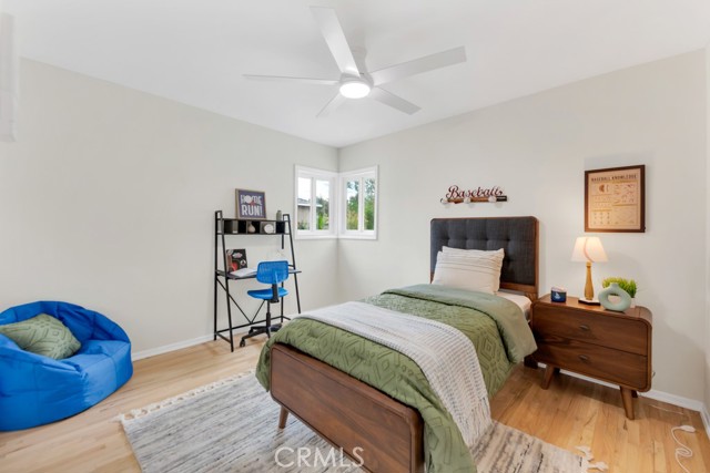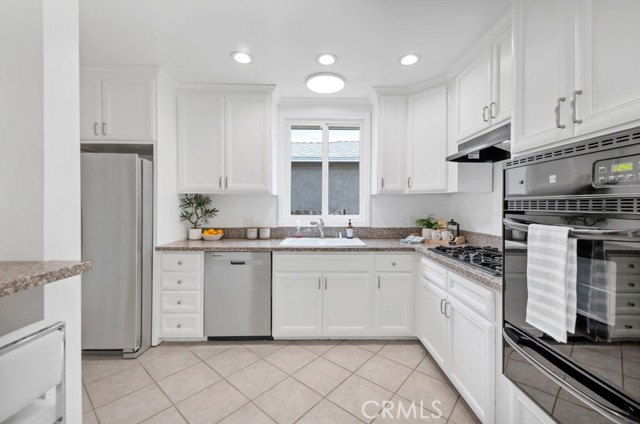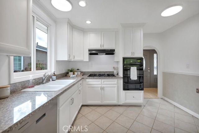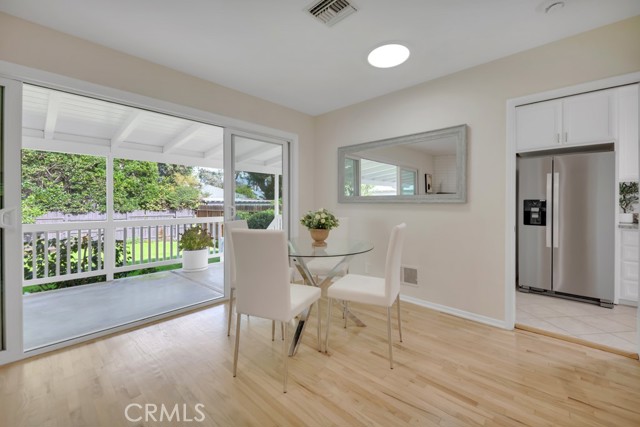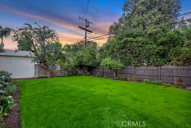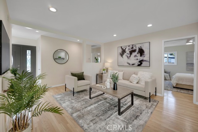 Located South of the Blvd on a tree-lined Woodland Hills street, this single-story 3 bed, 2 bath home offers 1,320 sq ft of bright, easy living on a 6,252 sq ft lot. An open living/dining area showcases hardwood floors, recessed lighting and a painted brick fireplace, with large sliders that extend the space to a covered back patio, ideal for outdoor dining and entertaining. The cheerful kitchen features white cabinetry, granite counters, a gas cooktop, double ovens, stainless refrigerator and a convenient pass-through to the dining area. The bedroom wing includes a serene primary plus two comfortable secondary bedrooms, served by two updated baths, one with a glass-enclosed shower and another with a dual-sink vanity and tub/shower combo. The backyard is lush and grassy with mature landscaping, offering plenty of room to play and relax. An attached two-car garage and wide driveway provide ample parking. Moments to Ventura Blvd restaurants, The Village and Westfield Topanga, with easy canyon/101 access.